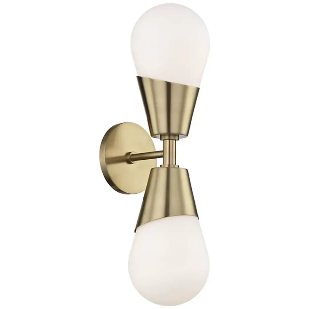 Invite balance and character into your interior spaces with the Cora Double Wall Sconce by Mitzi. Etched Glass raindrop shades send ambient glowing light upwards and downwards while making an eye-pleasing visual. A stylish alternative to table lamps, this wall light makes a well-dressed addition to a master suite, dining room or entryway.