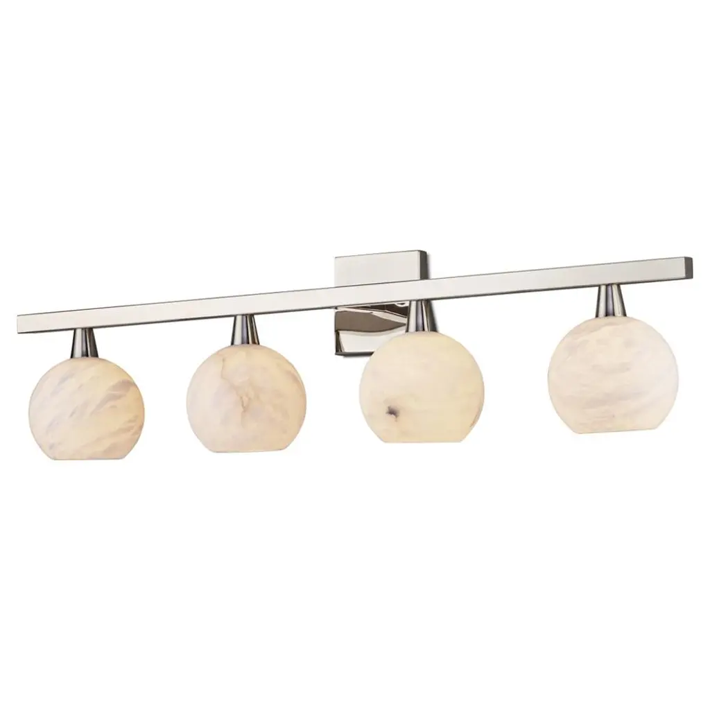 Cora Hollywood Regency Natural Alabaster Polished Nickel Bath Bar Sconce