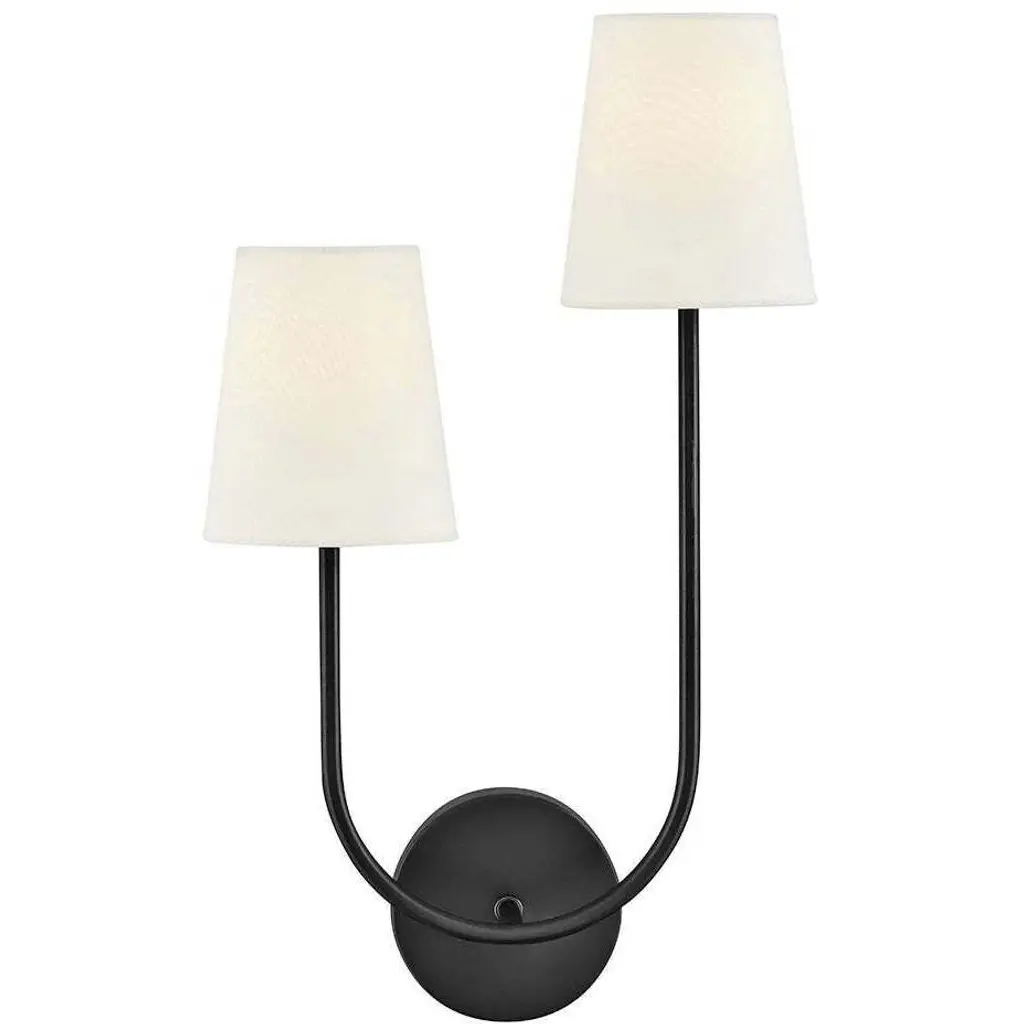 A very reserved yet inviting design, Coras mindful left and right sconces create style symmetry that draws your attention to the surrounding space. Dual lamps look great with or without white linen shades.
