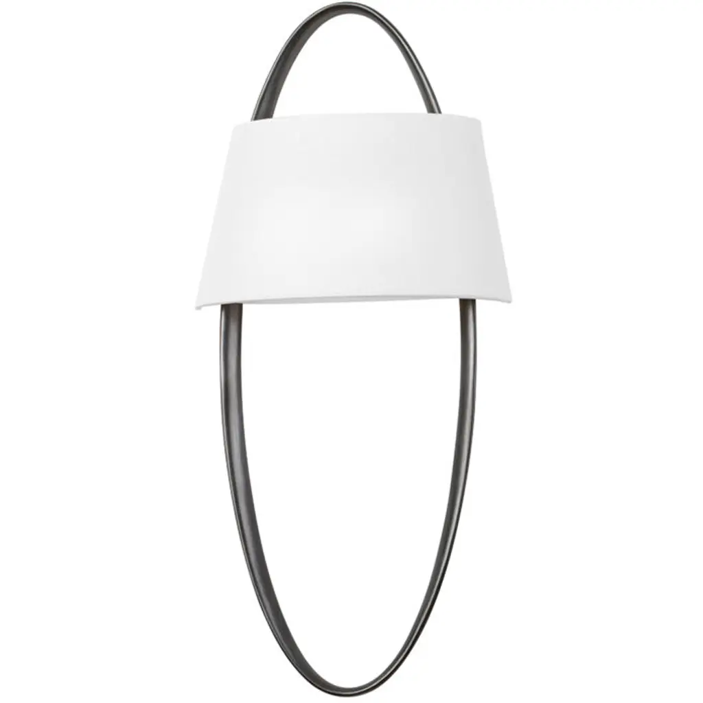 LED Wall Sconce from Dubai collection in Black Silver Leaf finish. Number of Bulbs 2. Max Wattage 8.00 . No bulbs included. A soft white linen shade wraps around a smooth, elongated metal ring in Vintage Gold Leaf or Black Silver Leaf to give this sconce its feeling of effortless elegance. Light fills the shade creating a soft wall wash that also reflects beautifully off the ringed metal framework. No UL Availability at this time.