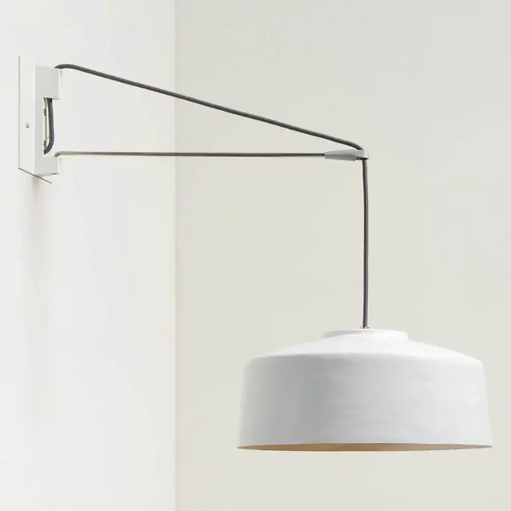 The Cord Plug-In Wall Sconce from Ravenhill Studio is a refined take on adaptable lighting, blending precision engineering with understated materials. A modern evolution of Jean Prouvé’s Potence Lamp, this sconce rests flat against the wall and effortlessly swings out to direct light where needed. Each fixture is designed and made in Los Angeles and features a hand-cast ceramic socket, slender metal rods, and a cloth-covered electrical cord. It delivers adjustable light with a sculptural presence while maintaining a strong, visually striking structure.