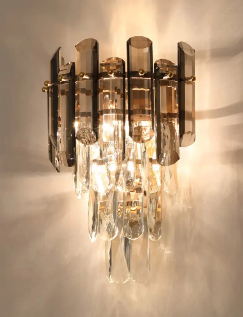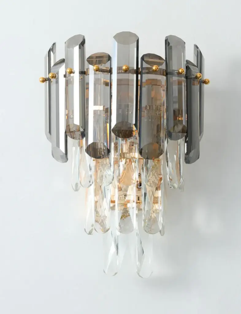 Cordoba | Smokey Gray Crystal Wall Lamp, Clear Crystal