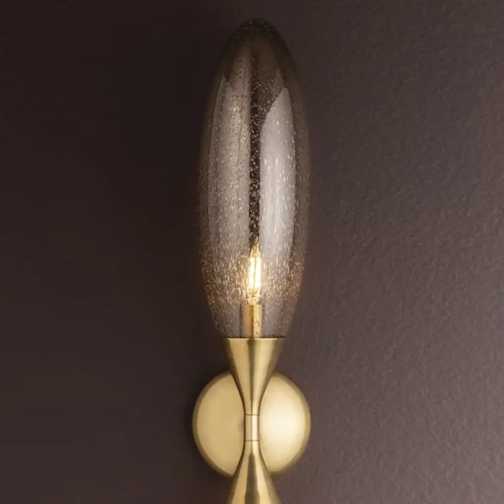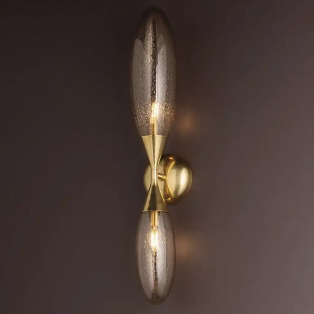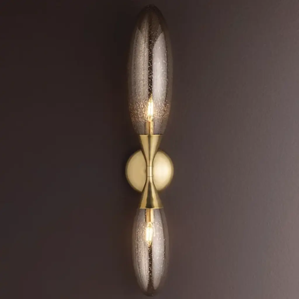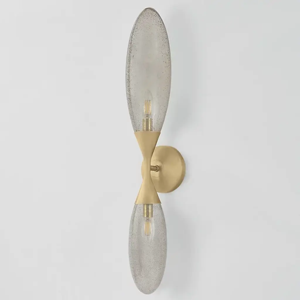 The Cordoba Wall Sconce from Corbett Lighting pairs elongated glass forms with structural brass in an unexpected wall-mounted design. Seedy glass elements extend from the central mount like stretched droplets frozen in motion. Each glass piece contains its own light source, creating multiple points of illumination that glow from within while casting light outward. The brass backplate and supports provide the necessary structure without competing with the glass for attention. This sconce turns flat walls into dimensional display areas, working particularly well in pairs flanking mirrors, artwork, or fireplaces, or as standalone pieces in hallways.