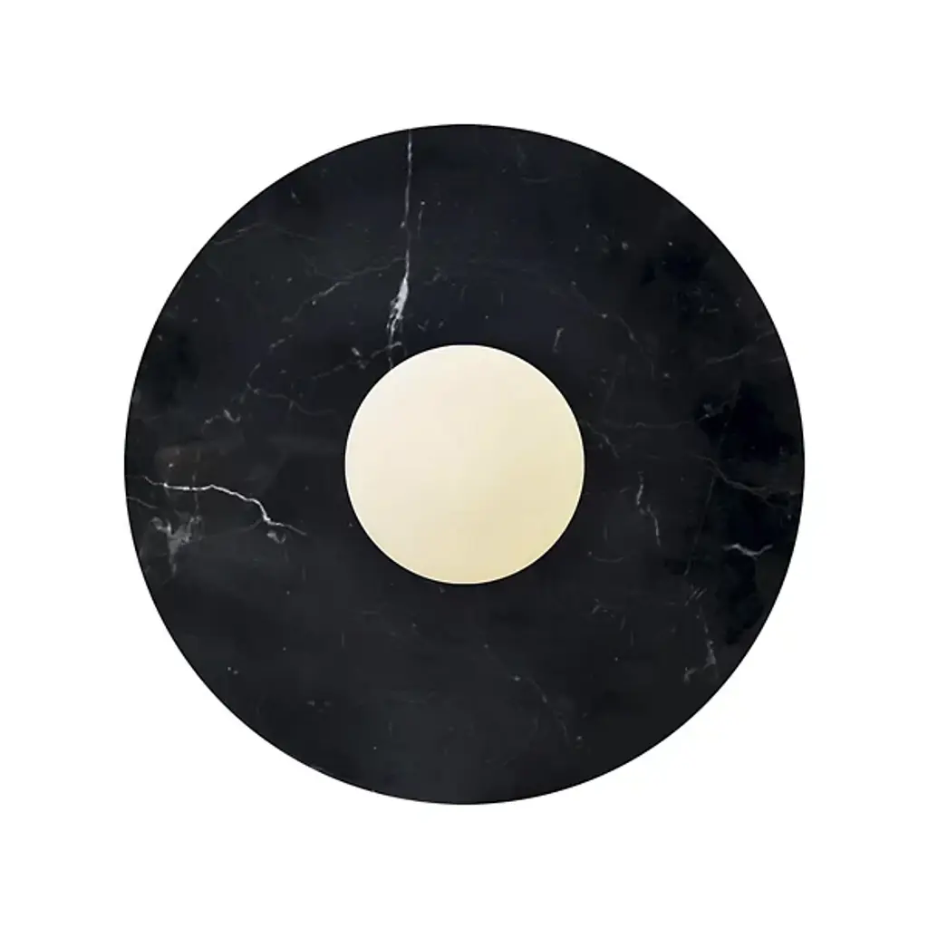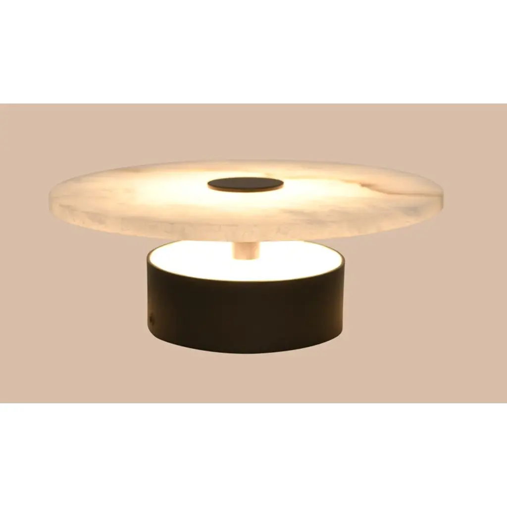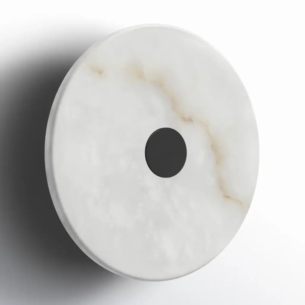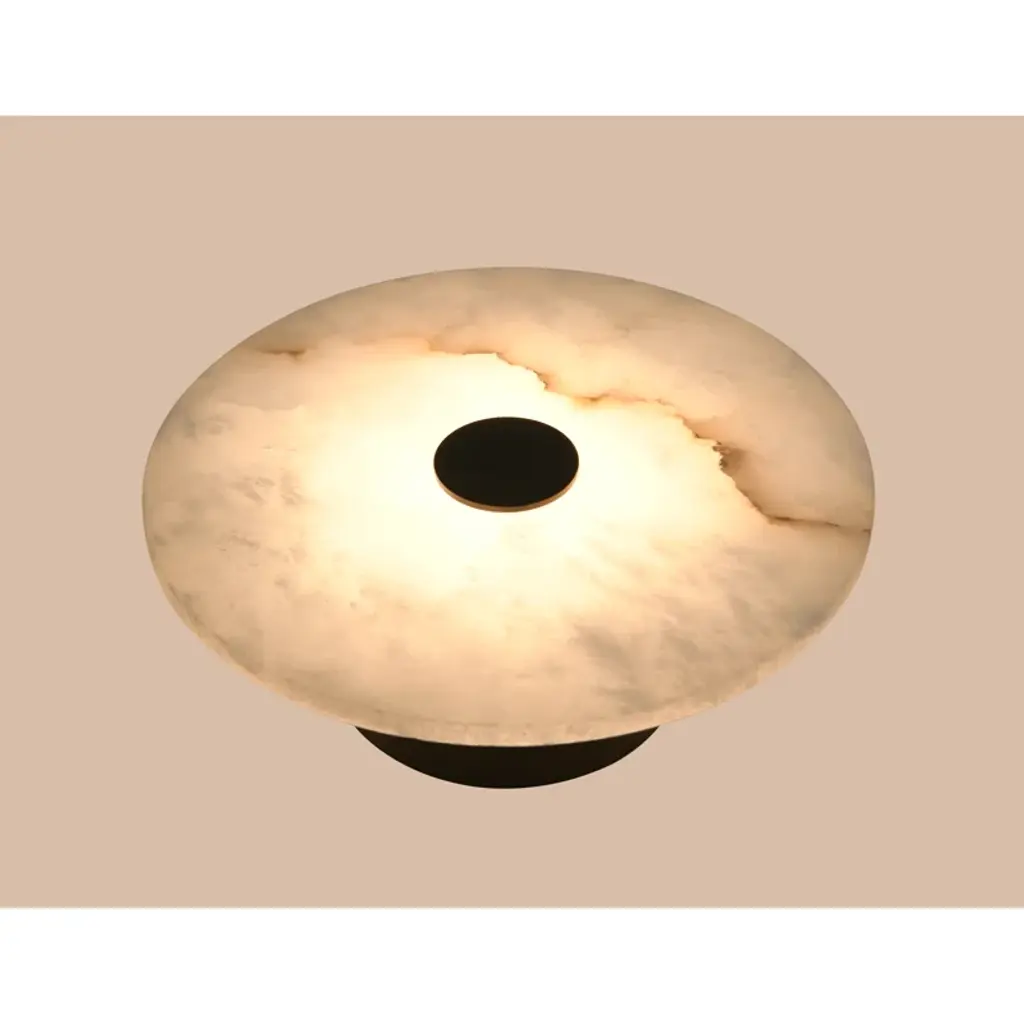 Sculpted perfection emanates from the ivy bronx modern wall sconce. Its sophisticated confluence of artistry and illumination pairs a natural Spanish alabaster disc diffuser with glowing led illumination that adds adaptability with dimming capabilities and color temperature adjustability via its wall switch. A sophisticated warm brass finish center bracket secures the shade to the wall plate, offering elegance and inviting appeal. Add a pair flanking a fireplace mantel or entryway to create a rich, refined finishing touch. Alabaster is a naturally occurring stone, offering variation in pattern that ensures each and every light is unique.