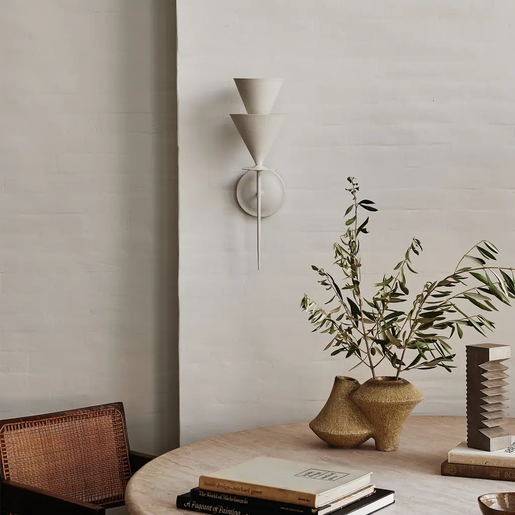 Featuring inverted cone shades in white cast plaster, the Cornet collection is designed to build off of the continuum of history. Specifically referencing 1920's - 40's European design influences, everything from art deco through to Italian midcentury. The minimal sculptural forms in each design bring a sense of drama to any space.