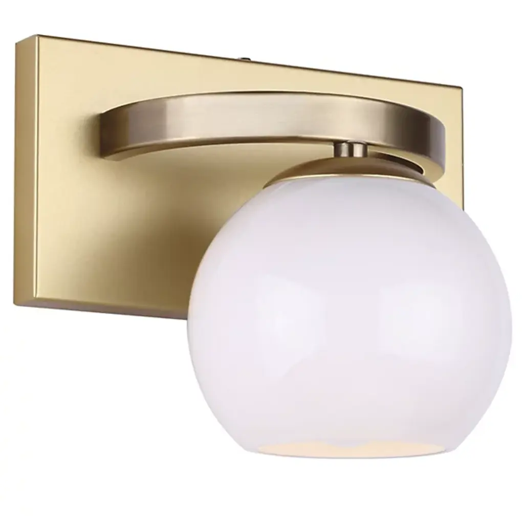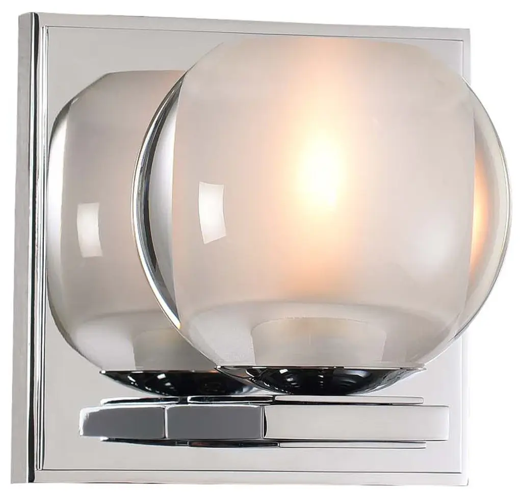 Corona 1 Light BathStyle: ModernRated: DryPower: HardwireLamping: 1 light(s). 3W LEDBulb(s) included.Finish: Satin NickelThe Corona Collection features Clear Globe Glass Balls with Frosted Interiors. Offered in a Polished Chrome or Satin Nickel finish over heavy gauge steel construction. LED bulbs are included.