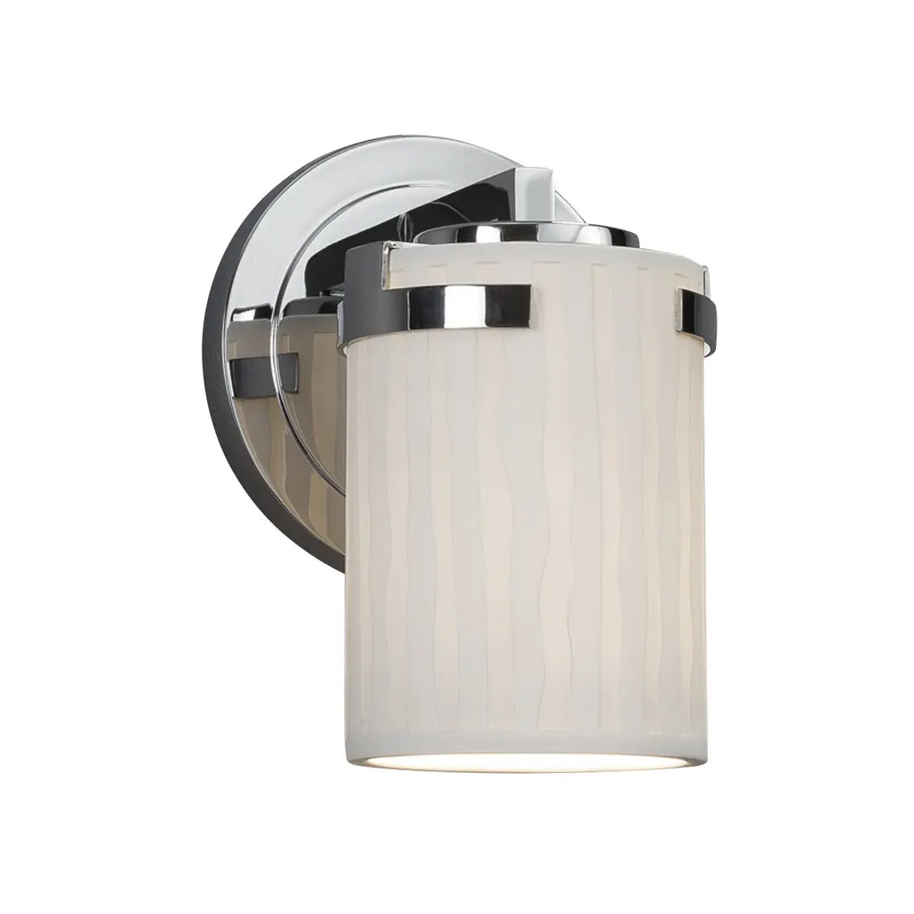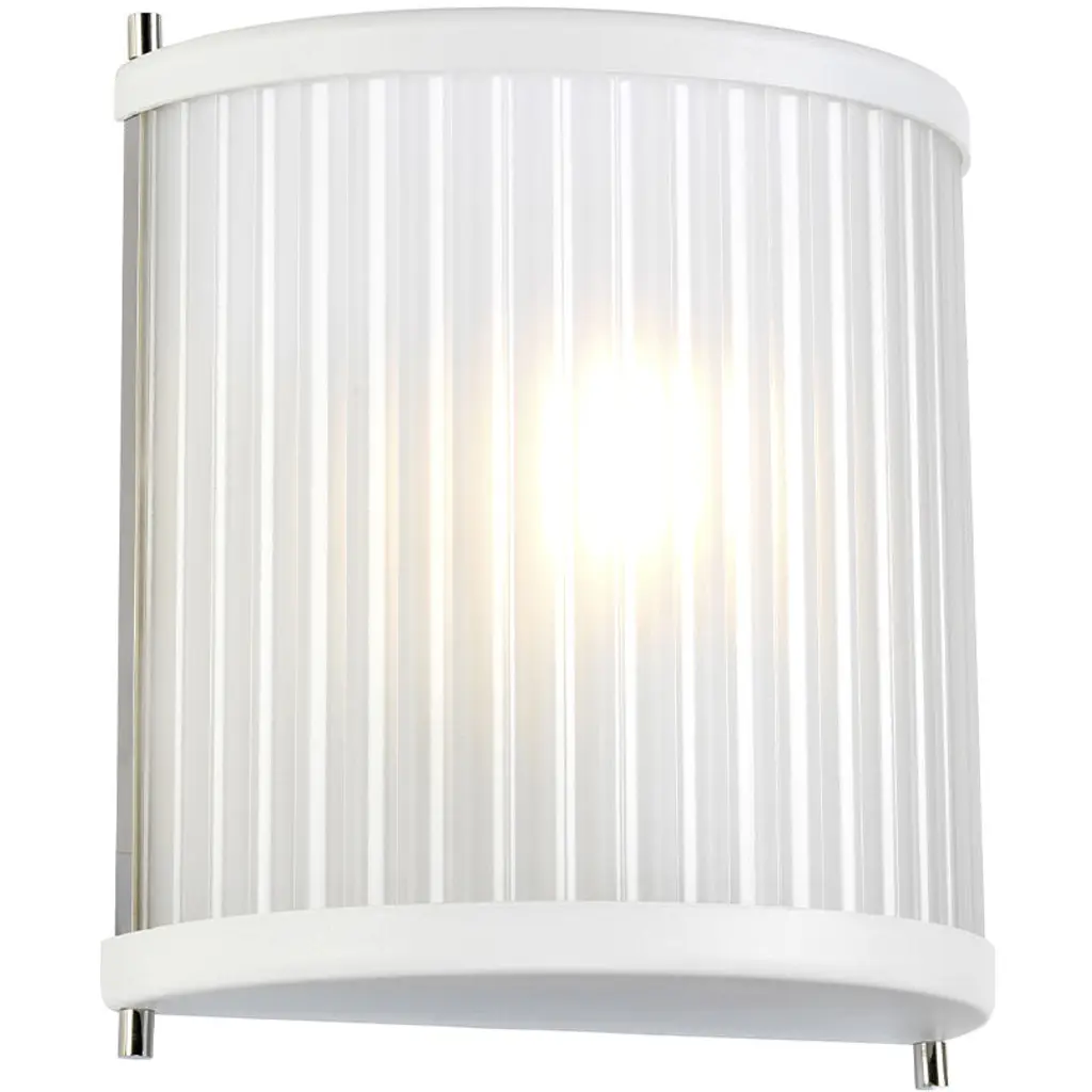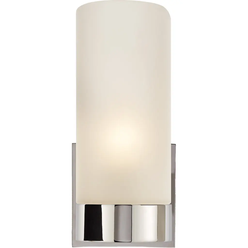 flexible sconce design in White Polished Nickel finish. Frosted, ribbed glass create a subtly diffused light that warms any room.