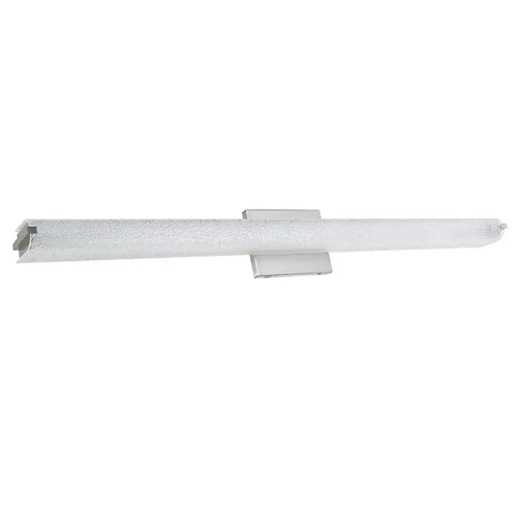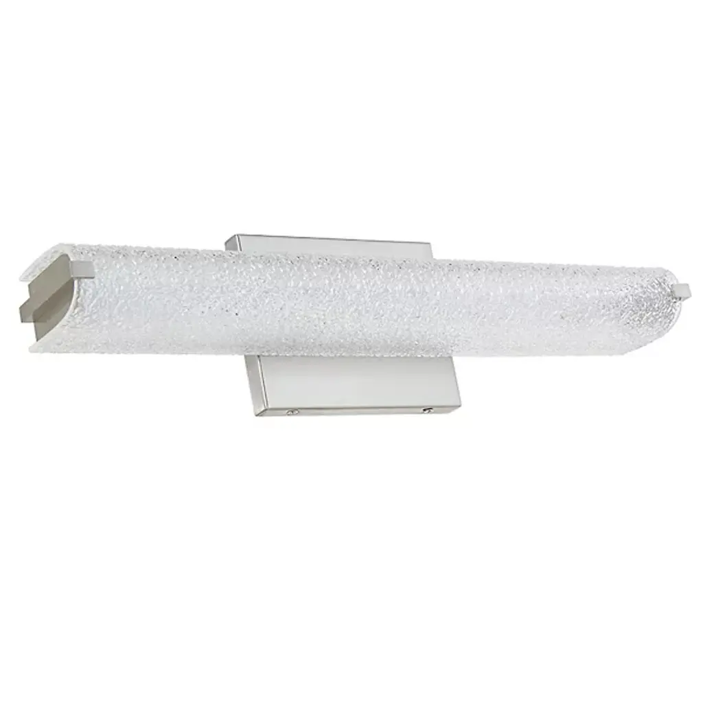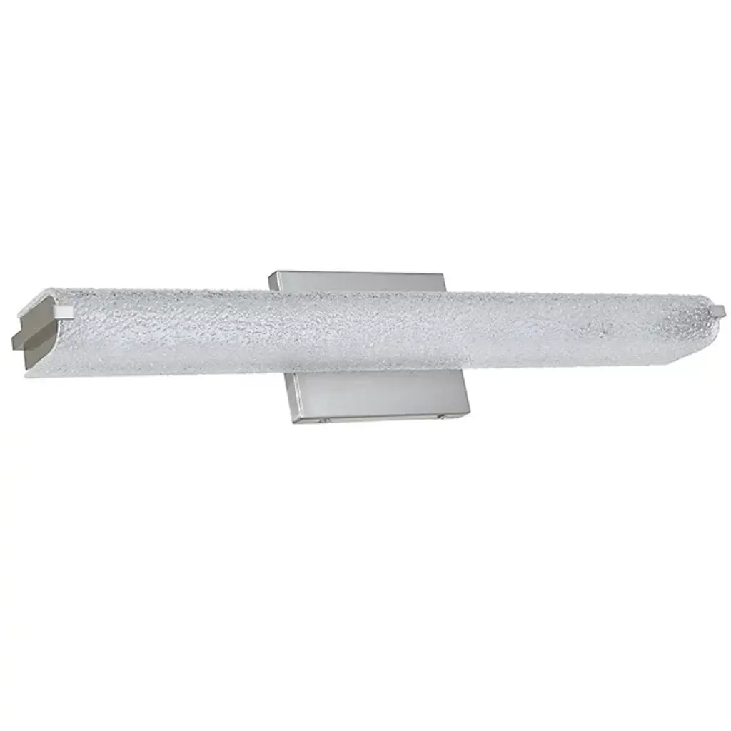 The Corrado LED Bath Bar from Huxe distributes a softened pass of even light through an artisanal diffuser that enchants with fine details. The bath bar’s footprint on the wall is small as a slim, compact design. This fact couples with a vertical or horizontal mounting backplate to offer a seamless look in the bathroom. The geometric backplate doubles as a sleek background for the lively glass. This glass diffuser prevents glare by covering the light source in a tight curve. The tactile surface of the diffuser lets the light shimmer out and leave behind a spread of ultra-fine highlights. The outpouring light distributes an elegant warmth.