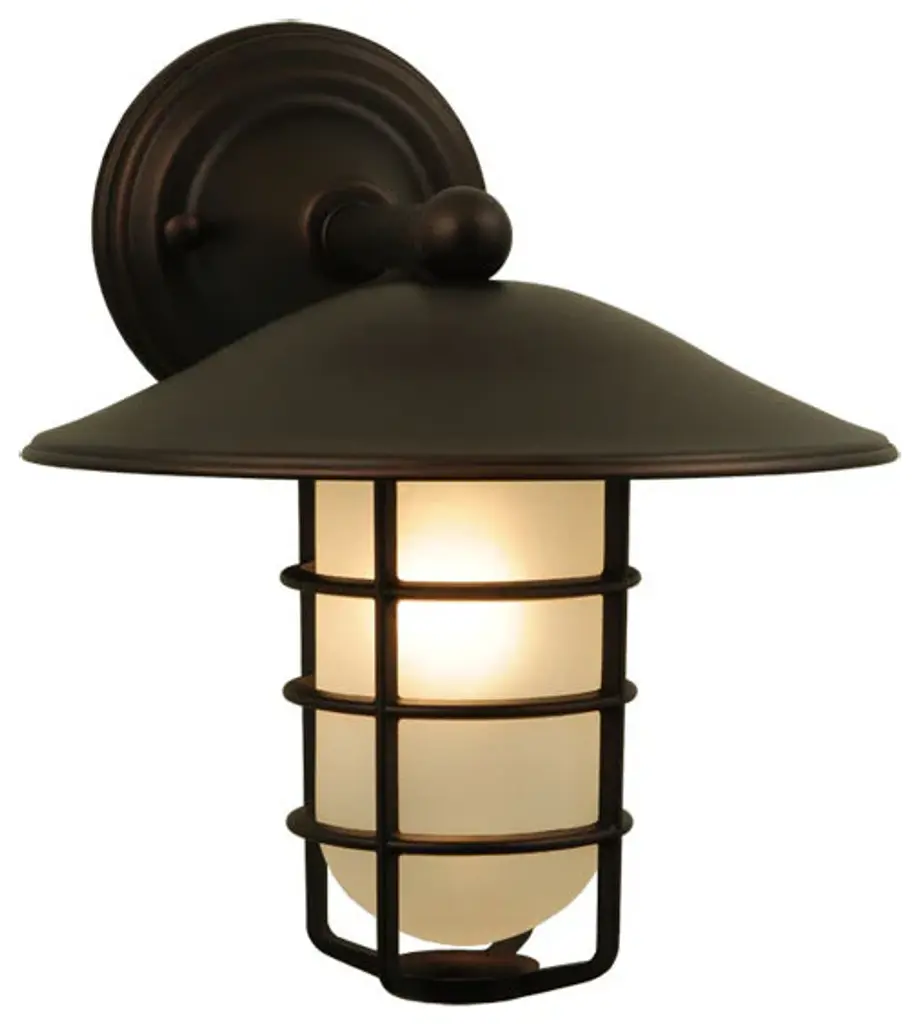 The 3417 Series Outdoor Wall Sconce by Besa Lighting has an industrial style with a window pane hand decorated detail. The shade is made from blown glass with a tint. The shade is mounted to an rectangular aluminum backplate. When in use the light provides diffused ambient light that will guide you. UL Listed for wet locations.