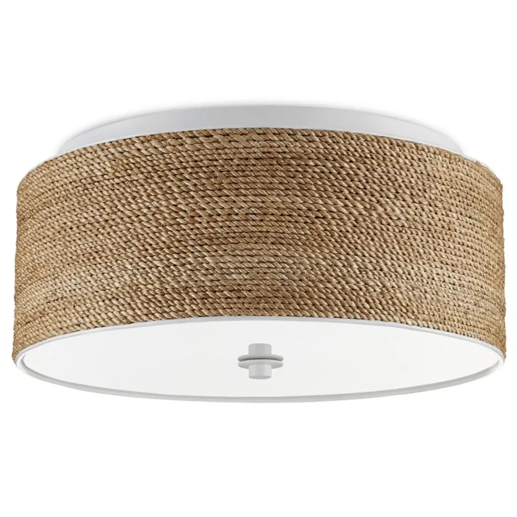 Introduce a sophisticated chic accent to a ceiling with this gorgeous flush mount light fixture. Appointed with densely woven abaca rope, white-finished accents and a diffuser to even the glow.
