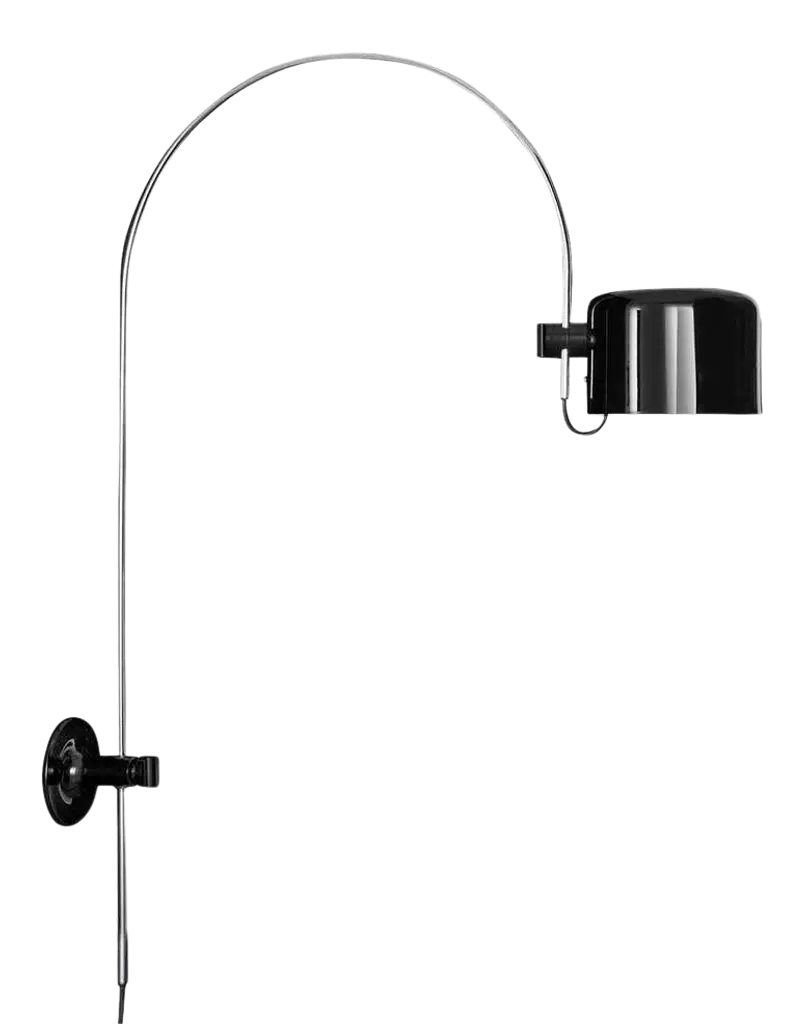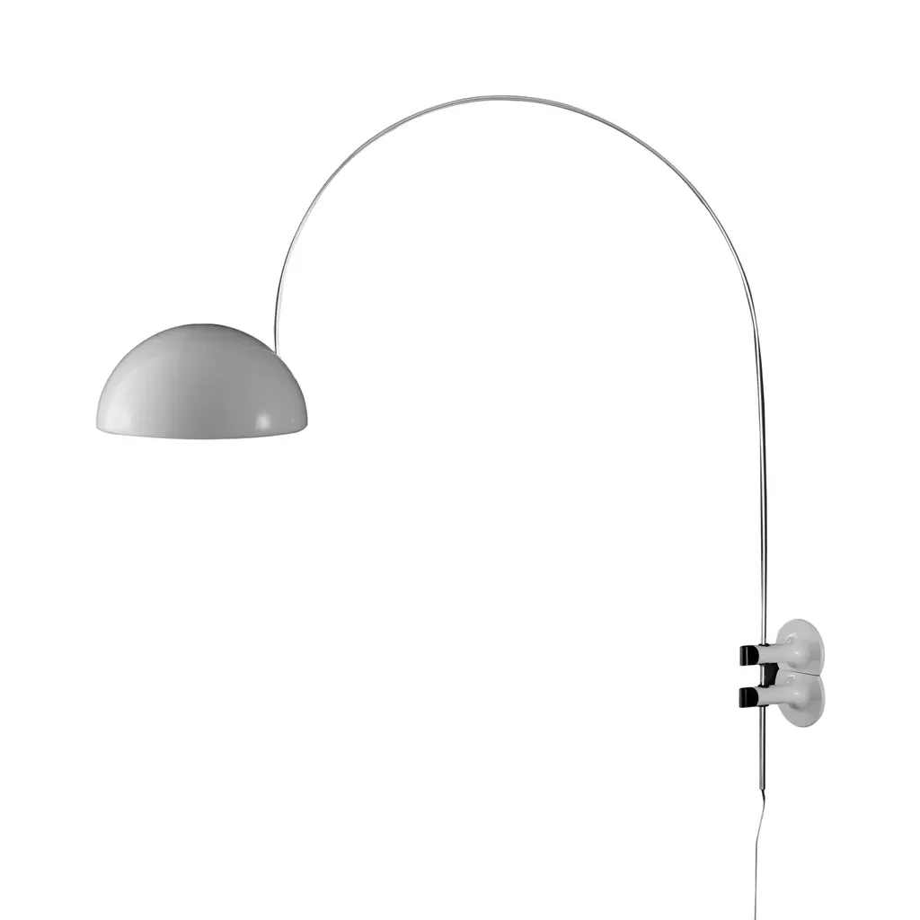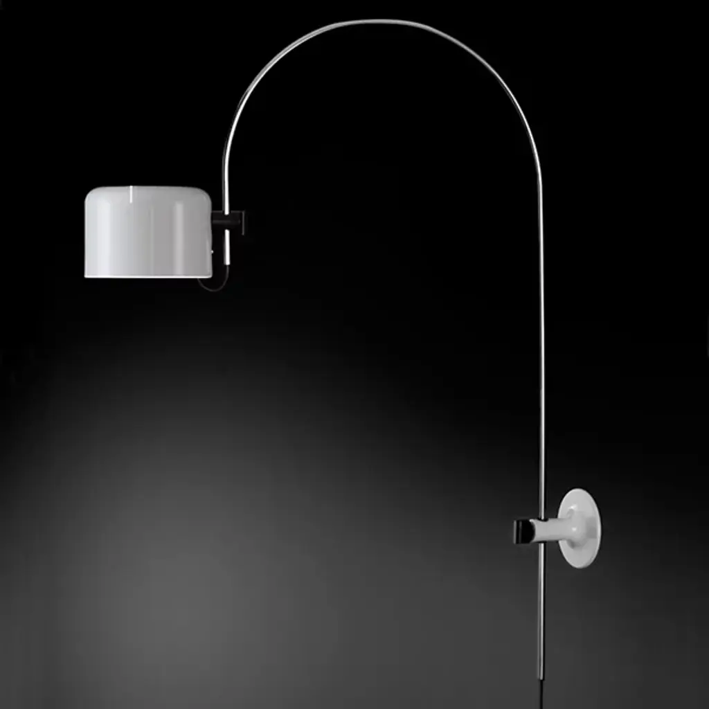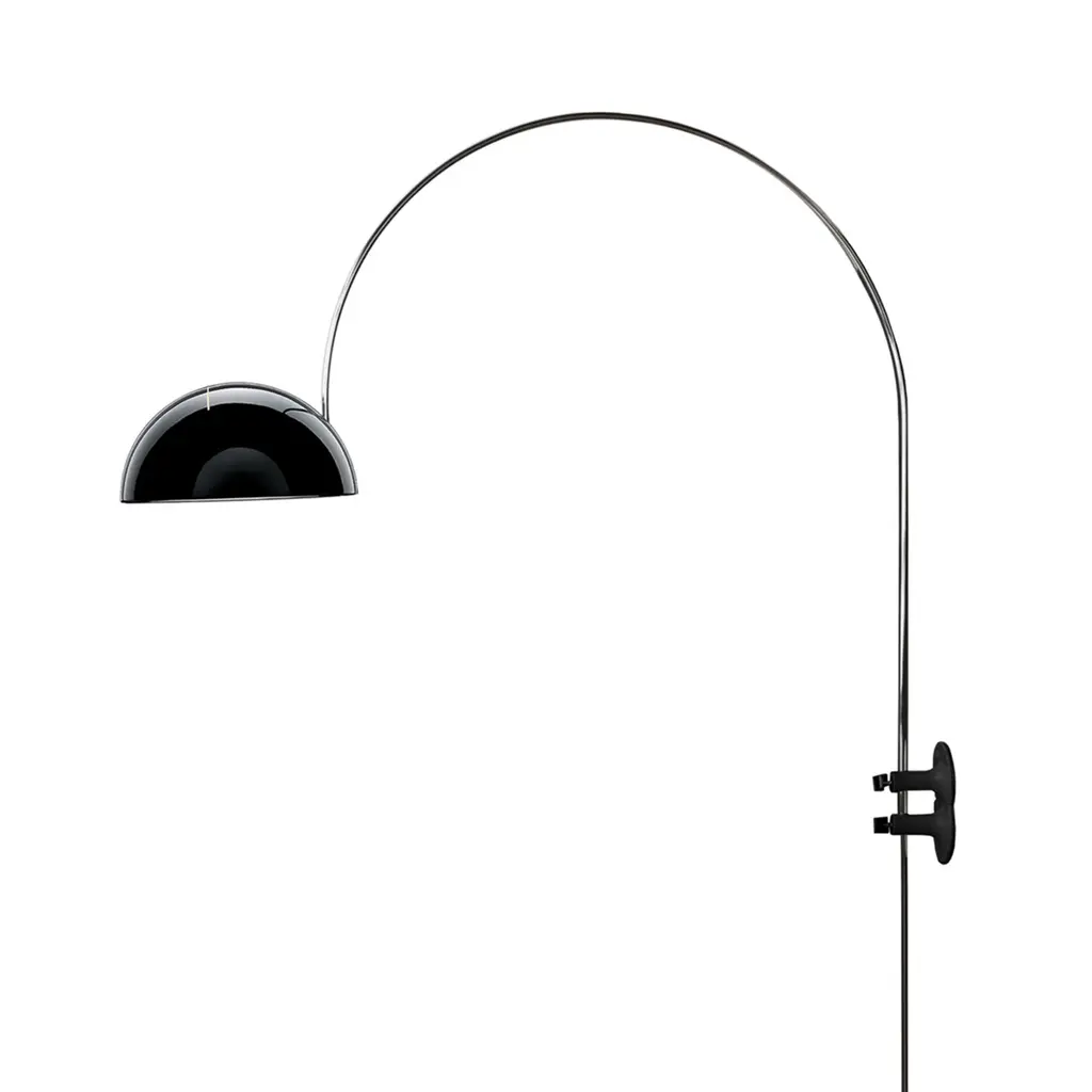 The Coupe Wall Sconce from Oluce combines a rounded, lacquered aluminum shade with a gracefully arched metal stem for an elegant accent and practical lighting solution. Designed by Joe Colombo and made in Italy, this fixture presents a simple yet striking silhouette to blend seamlessly into modern spaces or stand out completely. A round backplate supports the stem, and the adjustable head allows its gentle beam of light to be directed where desired with ease.