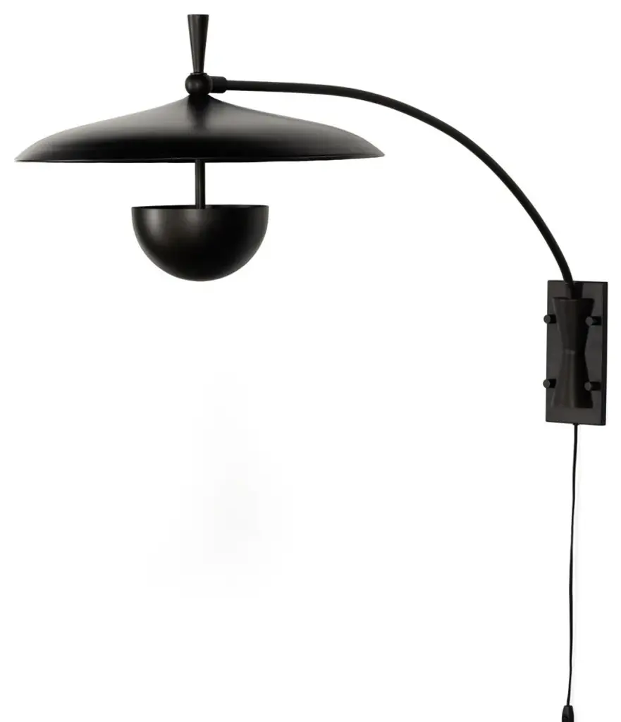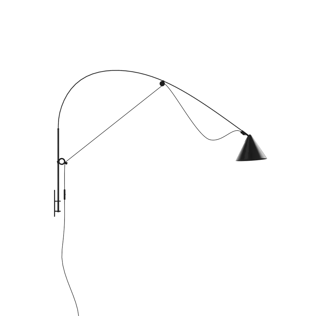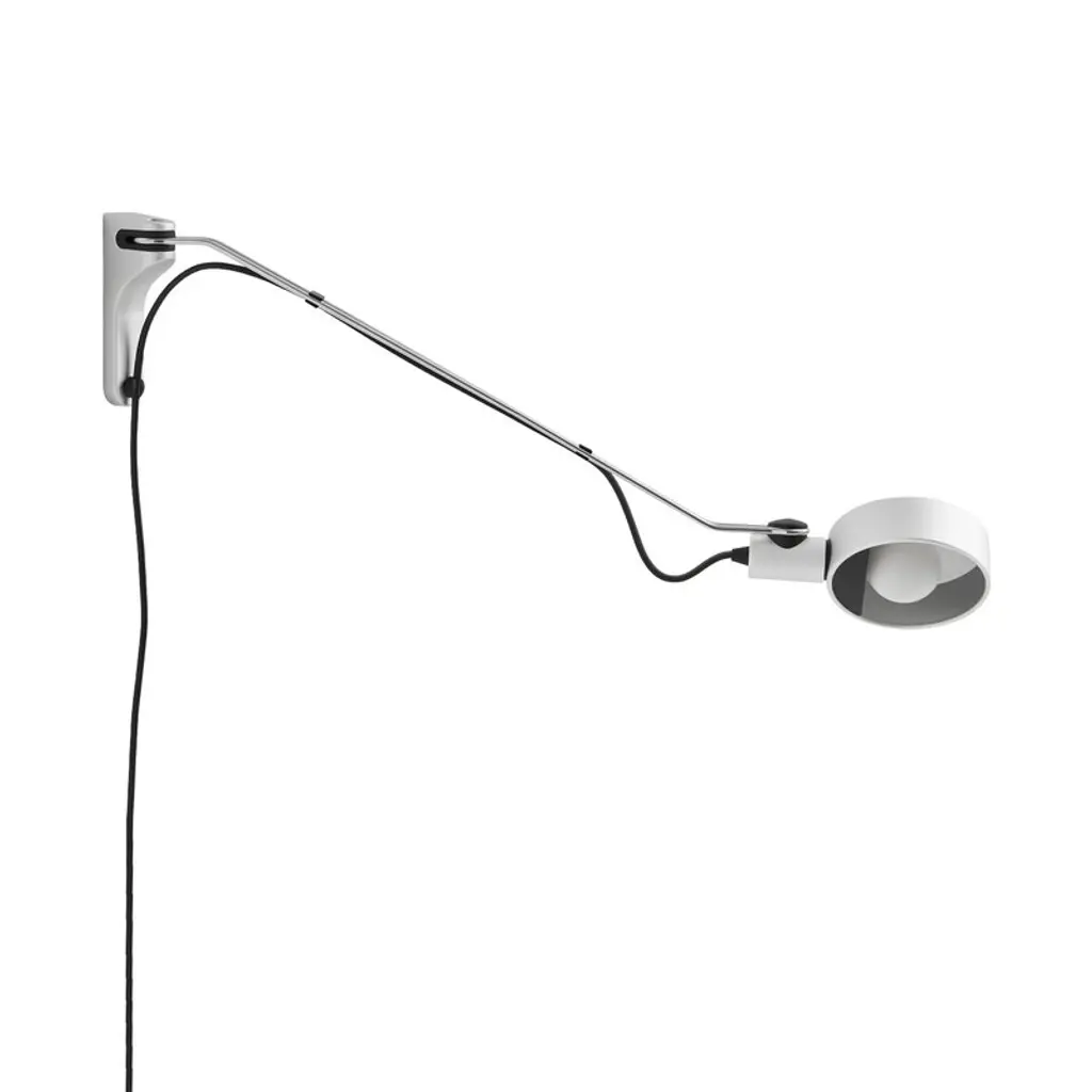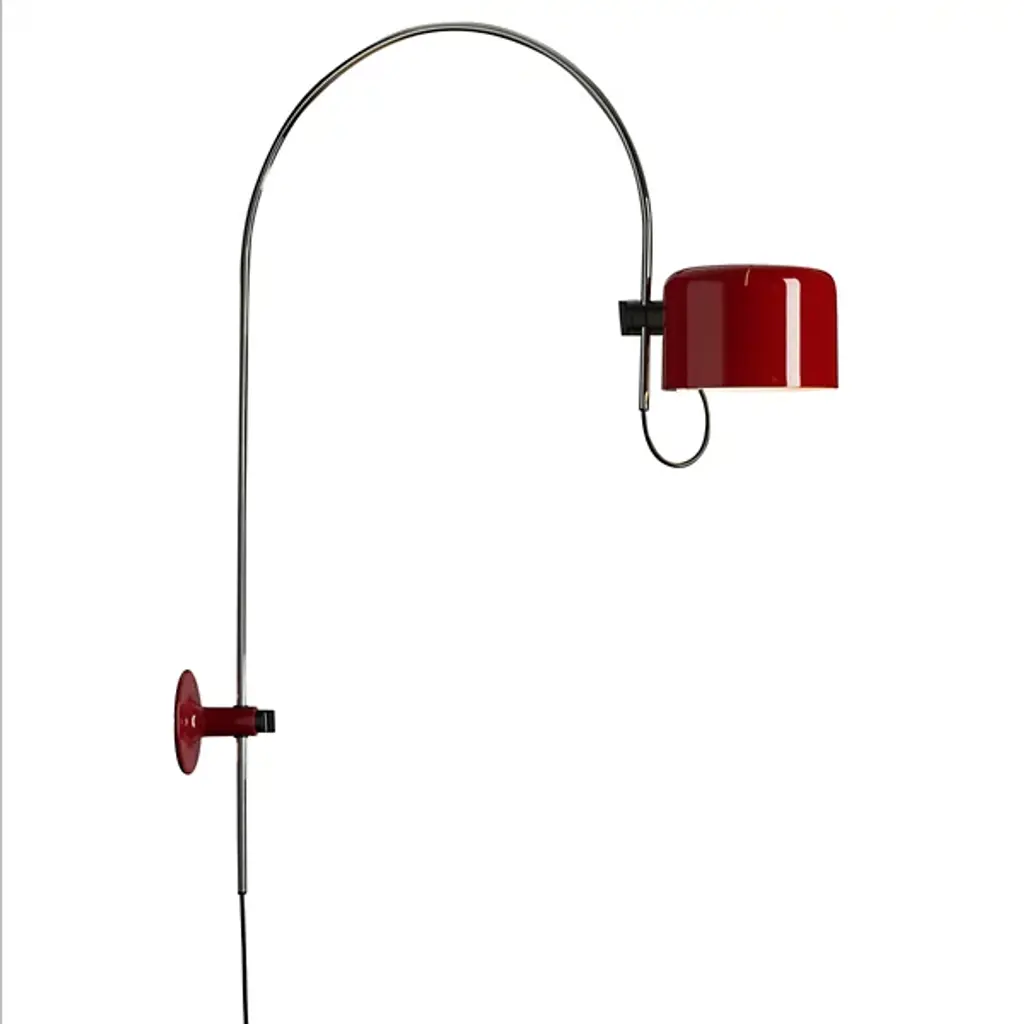 The Coupe Wall Sconce from Oluce combines a rounded, lacquered aluminum shade with a gracefully arched metal stem for an elegant accent and practical lighting solution. Designed by Joe Colombo and made in Italy, this fixture presents a simple yet striking silhouette to blend seamlessly into modern spaces or stand out completely. A round backplate supports the stem, and the adjustable head allows its gentle beam of light to be directed where desired with ease.