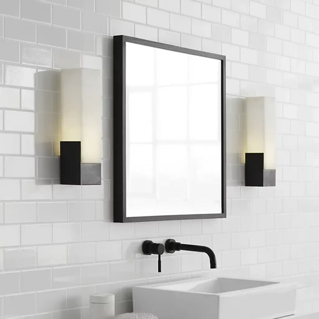 The Covet Tall Box Bath Sconce by Visual Comfort Signature, formerly known as Visual Comfort, creates a refined ambiance with a distinct rustic edge. Its design features a tall panel of alabaster stone which sits atop a robust metal holder. The semi-opaque stone acts as diffuser for a single LED light source, softening its radiance into a pleasing ambient glow.