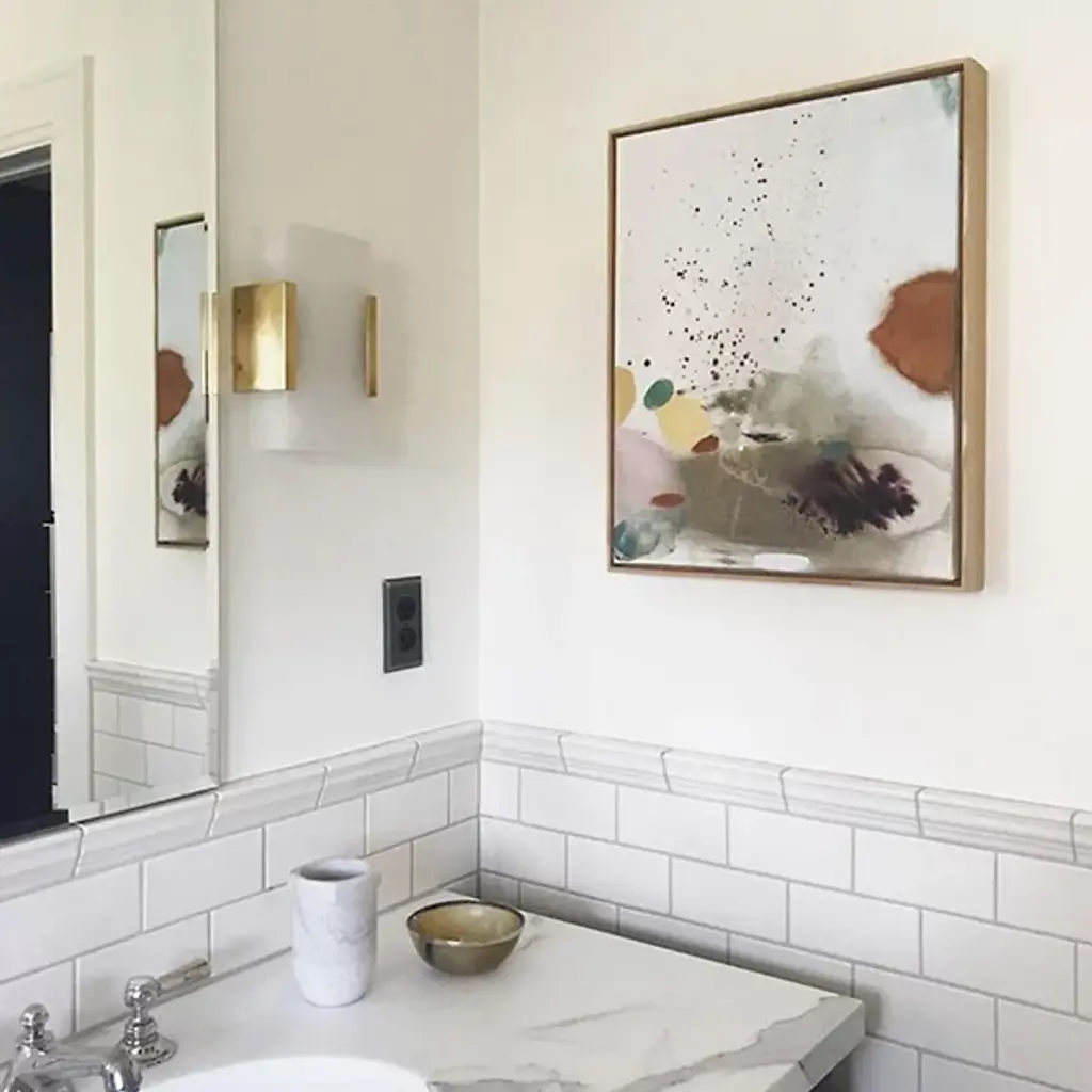 The Covet Wide Clip Bath Sconce by Visual Comfort Signature, formerly known as Visual Comfort, adds some grit to your bathroom décor, featuring a rectangular panel of Alabaster stone held in place by discreet metal clamps. The stone acts as diffuser for a single light source, softening its radiance into a pleasing ambient glow.
