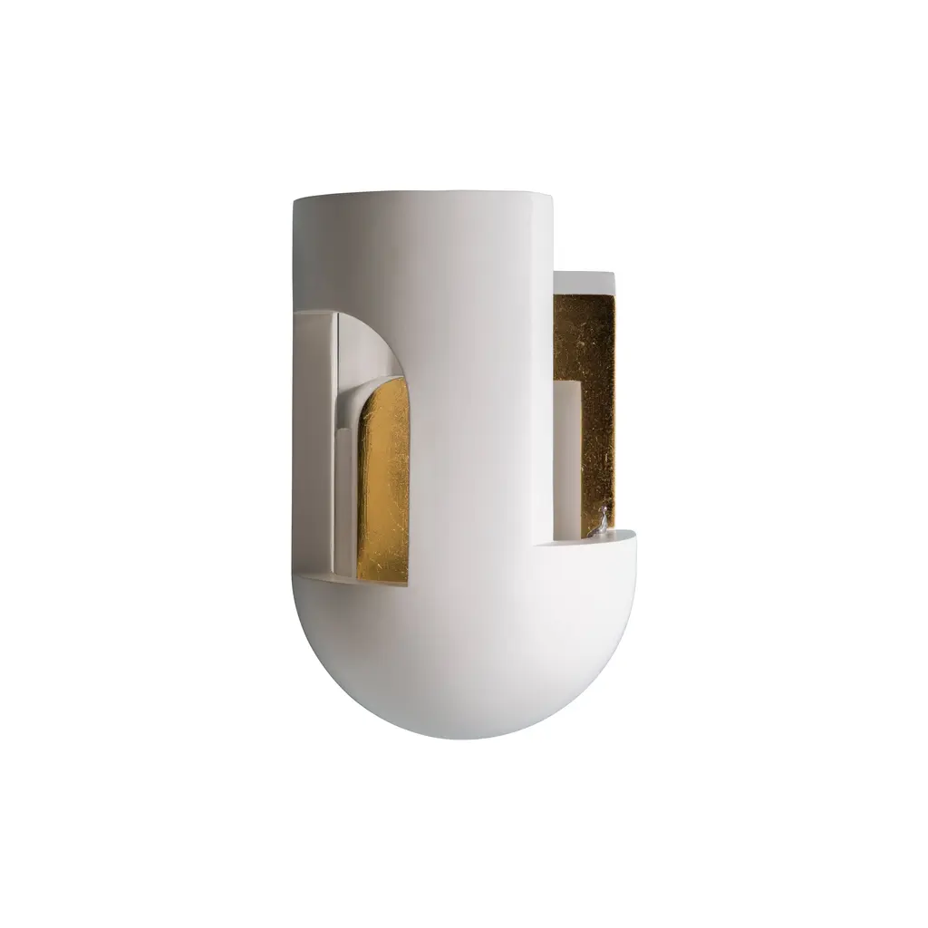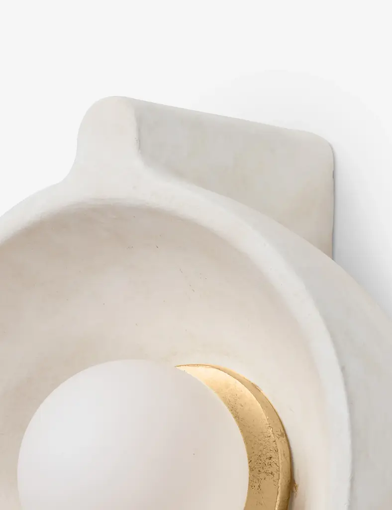 Taking notes from nautical lighting, accent fins add depth and character to this modern sconce. The ceramic dome in a textural white finish is accentuated with hints of vintage gold leaf hardware, offering a perfect touch of warmth, whether styled as a standalone sconce light or in multiples.