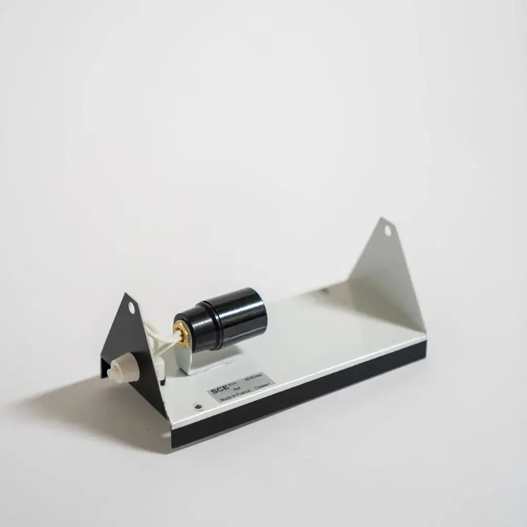 The iconic enameled wall lights by Charlotte Perriand from the 1960’s designed for the apartments of the ski resort Les Arcs in the French Alps (sold individuality). This fixture is a testament to Perriand's innovative vision and enduring influence on modern design. To Charlotte Perriand, lamps were not a decorative element added for no reason, but a functional and technical component, a tool and an object answering to specific needs. Perriand’s minimalistic approach instills a timeless character in her creations: these are ‘useful forms.' Its adjustable reflectors, can be mounted horizontally or vertically. Marked France, Manufacturer's label SCE E14 Galerie Steph Simon Fixtures do not included wiring for plug-in use. Professional installation by a licensed electrician is required for hardwiring. Wired for US standards, one E12 socket, max. wattage 40W each (bulbs not included).