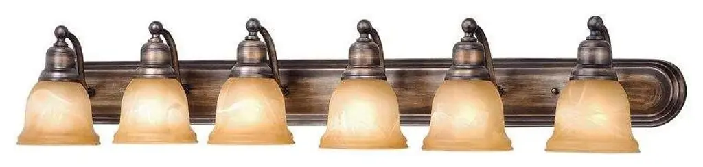 Width: 32"Height: 13.625"Ext: 8.5"This Fabulous Bath Light Has A Crackled Bullion Finish and Pale Mango Glass! This Incredible Fixture Takes 4-100 Watt BulbsBulbs Not IncludedUL ApprovedPlease Note: Standard hard wire electrical installation required. Additional minor basic assembly may be required. i.e. Attachment of accessories which may consist of glass, crystal, candle sleeves, shades, chain,rods and/or ceiling canopy or other items that are often packed separately to avoid damage in shipping.