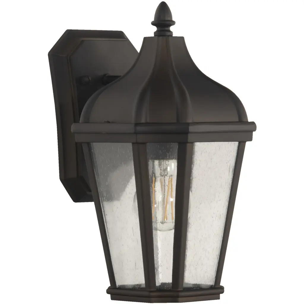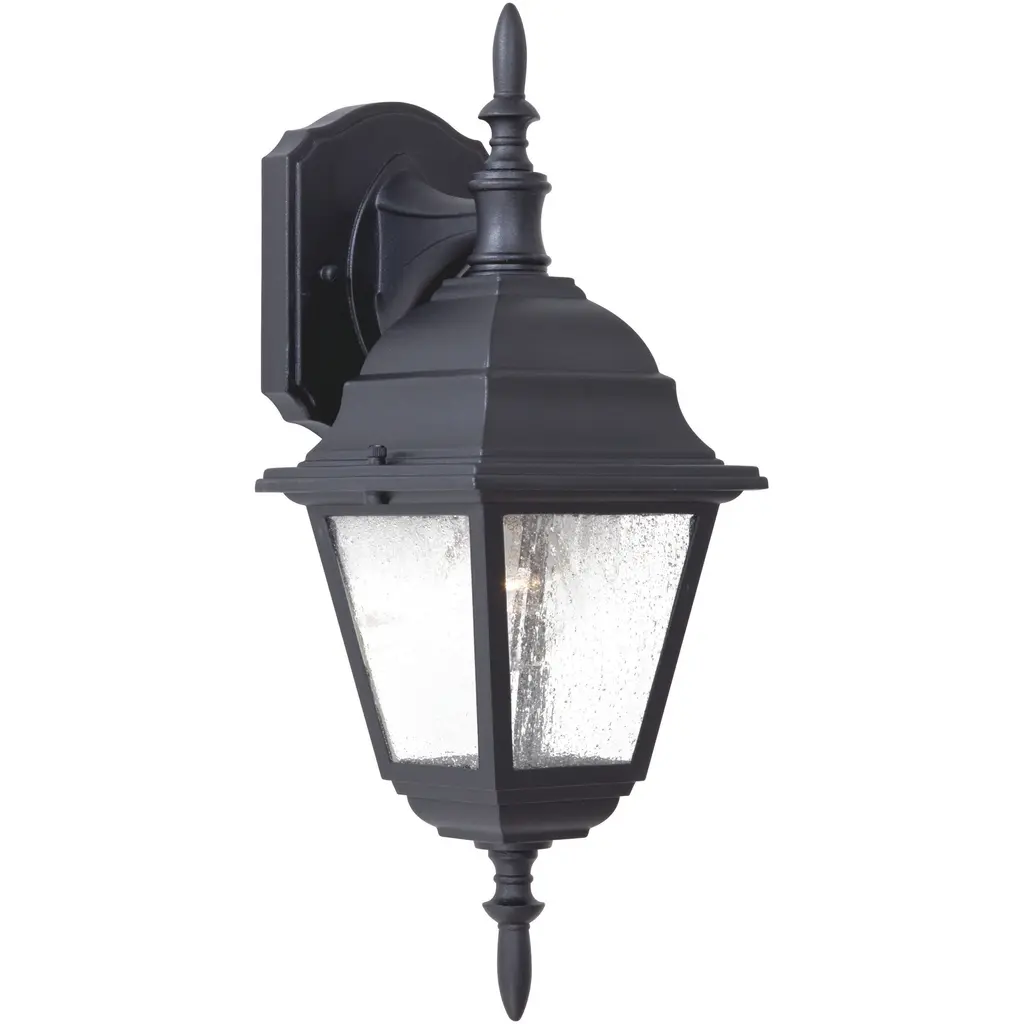 The Argent II offers a rustic style that’s not only appealing to the eye, but also designed to withstand outdoor elements. With its signature flared top cast in a striking midnight black finish and clear seeded glass, no matter which style or size you choose, the Argent II is sure to set the stage. Mounting Direction: Down Shade Included.