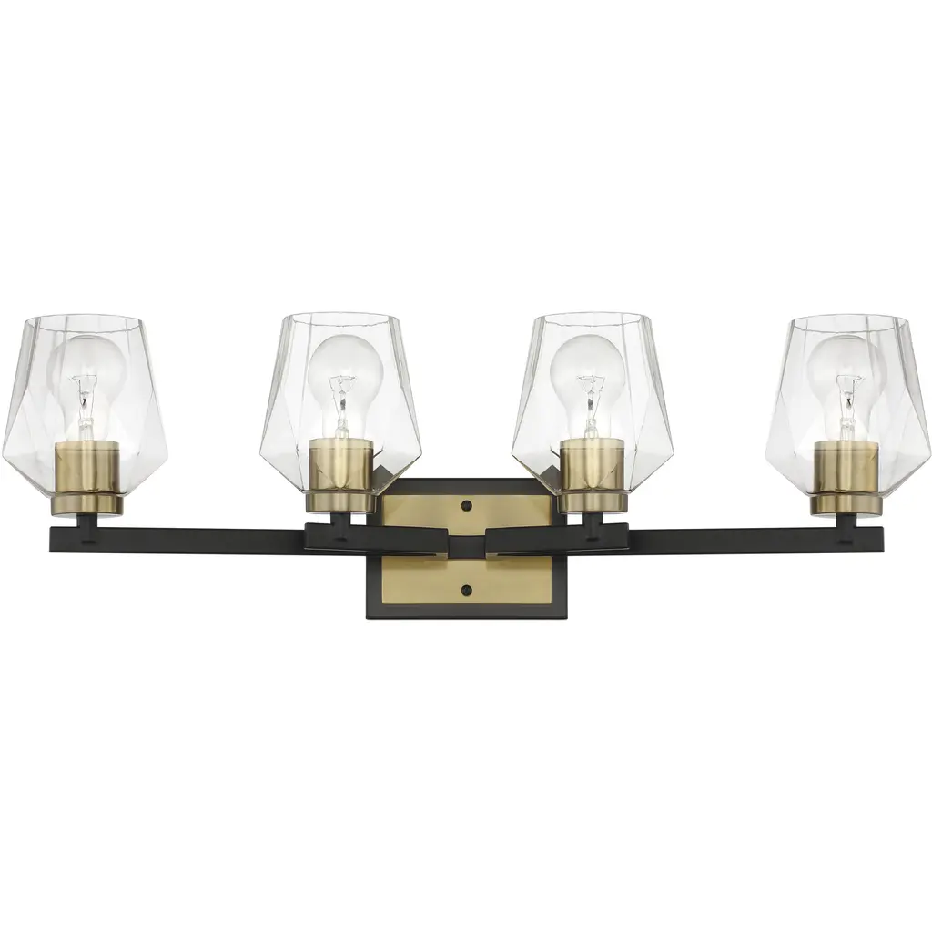 The Avante Grand Lighting Collection by Craftmade is a welcome addition to any space where striking good looks and warm illumination are needed. Featuring a Flat Black with Satin Brass accented finish, unique faceted decorative clear glass globes and strong lines, this damp rated assortment of chandeliers, pendants, sconce and vanity silhouettes combine to create versatile transitional collection. Decorative Clear Glass Globes Damp Rated
