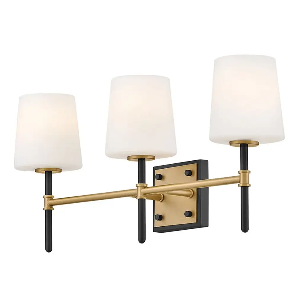 The Chatham Collection featuring white linen shades offset by a rich satin brass finish delivers uncomplicated beauty. Available as a sconce up to a four light vanity, this damp rated collection offers an updated transitional twist to a classic style. White Cylinder Linen Shade 5.25" H x 4.5" W Damp Rated Bulb: 3 x 40W Max, Candelabra Base(Not Included)
