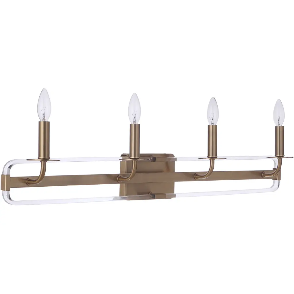 Graceful lines of clear acrylic frames accented with satin brass create the eye-catching Graclyn collection from Craftmade. This updated traditional collection is available in your choice of five or nine light chandeliers, five light foyer, sconce and two to four light vanity fixtures. 60 Watt max, candelabra base bulbs not included. Warm Satin Brass Accented Clear Acrylic Frames Damp Rated Bulb: 3 x 6W Max, Candelabra Base(Not Included)