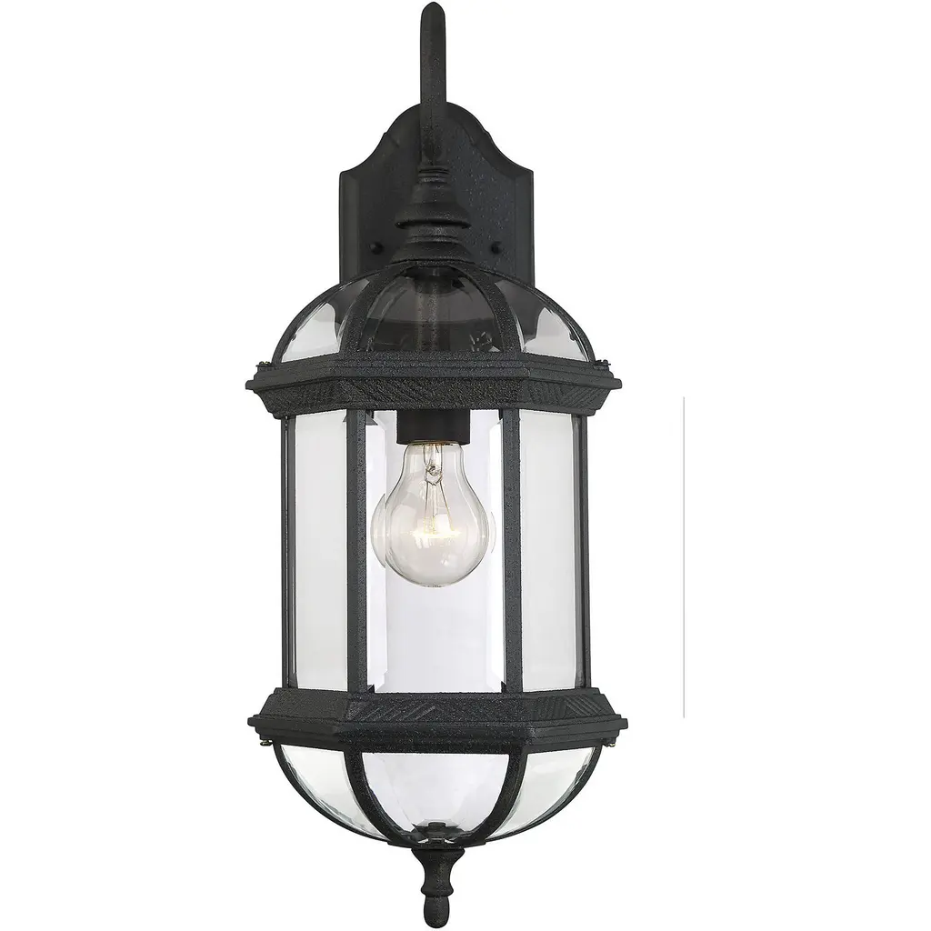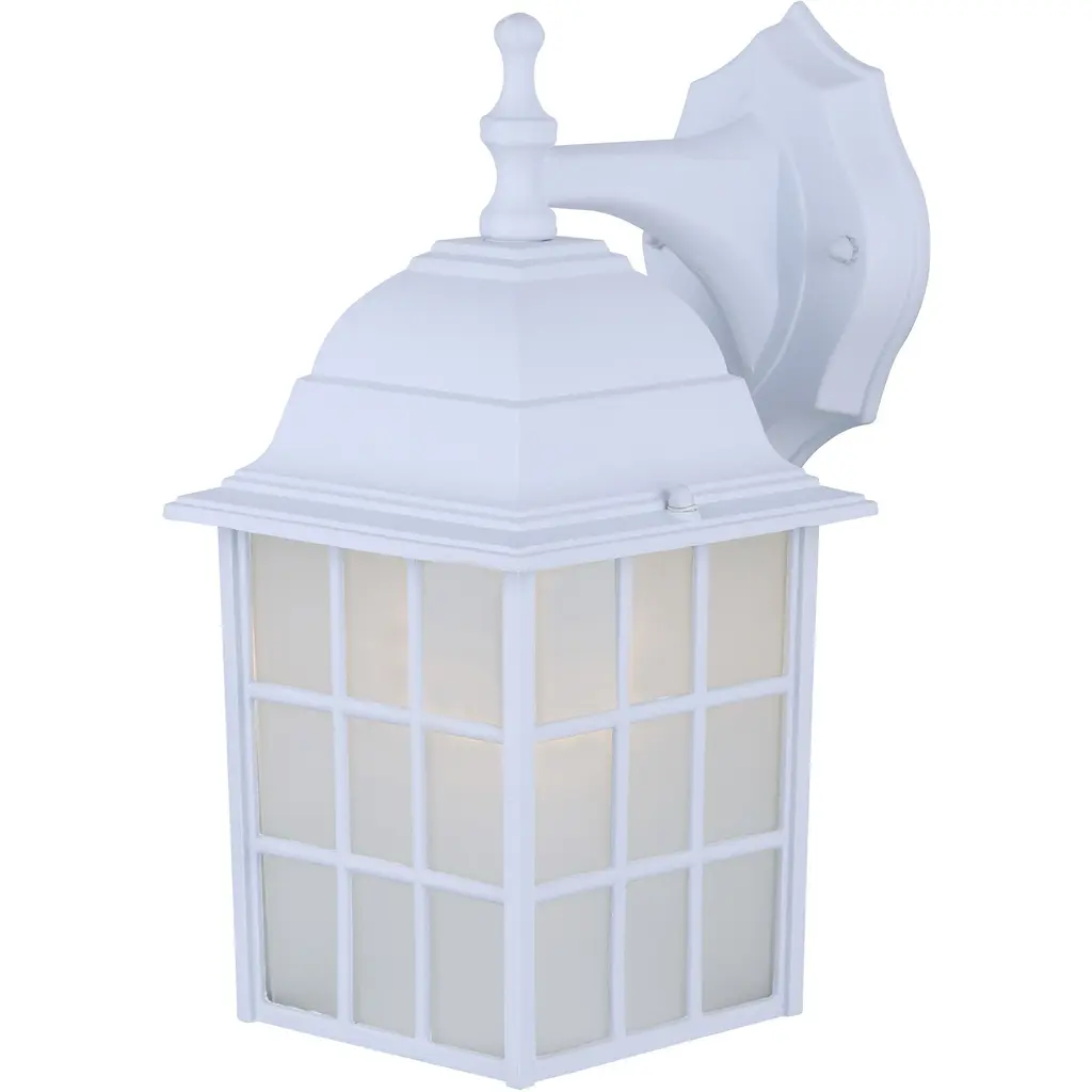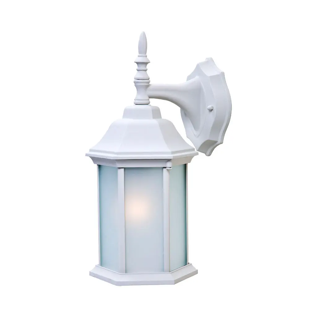 Height: 12.13" Width: 6" Lamping: (1)WA-Type Clear Beveled Glass 1 x 100W Medium Base Bulb (Not Included) Die-Cast/sand-cast aluminum components Material: Glass, Finish Color: Textured White, Width: 6.5", Height: 12.13", Length: 7.8", Depth: 7.8", Backplate Width: 4.33", Backplate Length: 5.75", Number Of Bulbs: 1, Wattage: 100 Watts, Dimmable: No, Moisture Rating: Wet Rated
