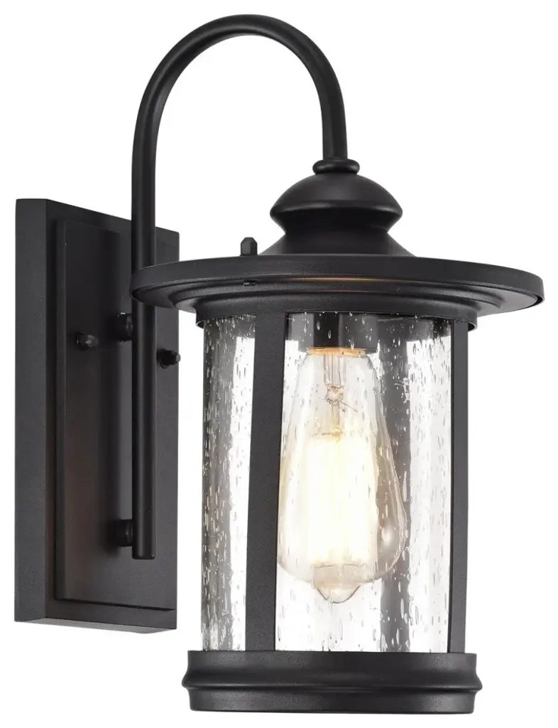The O'Fallon collection thoughtfully combines minimalist design with nostalgic retro styling to offer brilliant illumination ready to welcome your guests Clear seeded glass shade included Requires 1 medium base, 60 watt bulbs Backplate: 6.69 Inch H x 6.69 Inch W Rated for wet locations 1 Year limited warranty. 1 Year Limited Shade Included: Yes