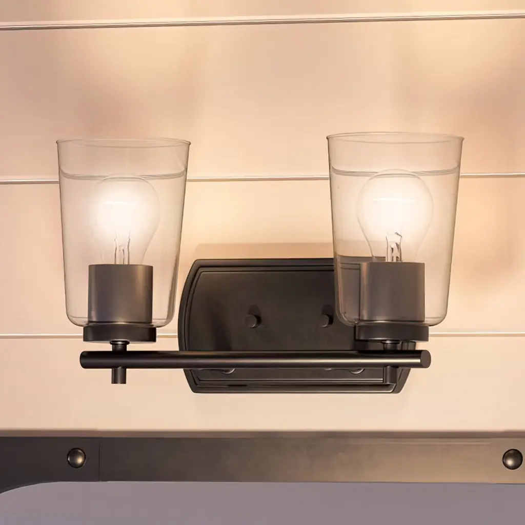 The Romero collection, featuring the distinct clear glass globes suspended from elegant loops, is offered in four sizes of vanity bath bars with each supported by a wide rectangular backplate as well as a coordinating rod hung adjustable height mini-pendant. Offered in brushed polished nickel, espresso and satin brass finishes. Back Plate Height: 4.72 Back Plate Width: 8.66 Shade Included: Yes