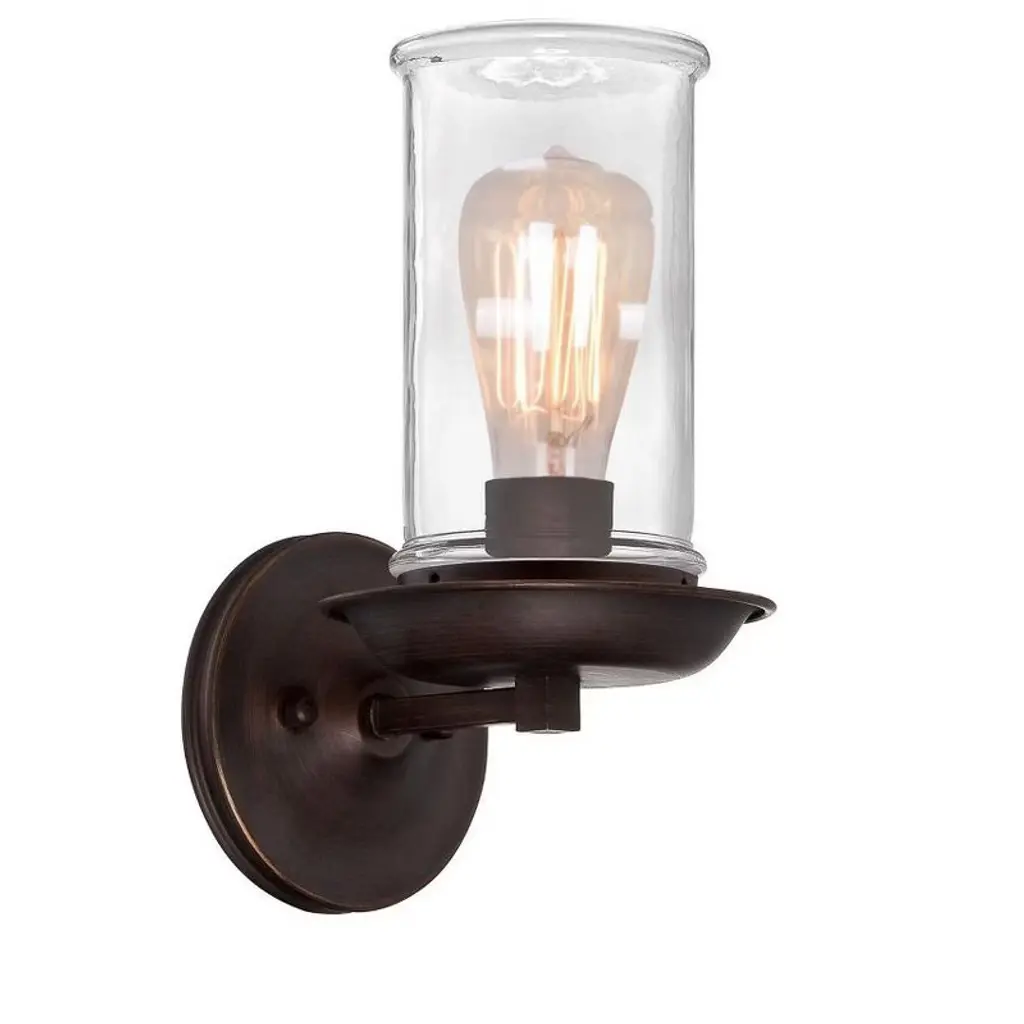 Extra-20: Product Not Found Material: Glass, Finish Color: Aged Bronze Brushed, Width: 6.13", Height: 11.5", Length: 6.13", Depth: 7.5", Backplate Width: 5.25", Backplate Length: 5.25", Number Of Bulbs: 1, Wattage: 100 Watts, Dimmable: No, Moisture Rating: Dry Rated