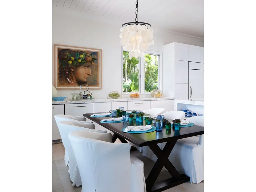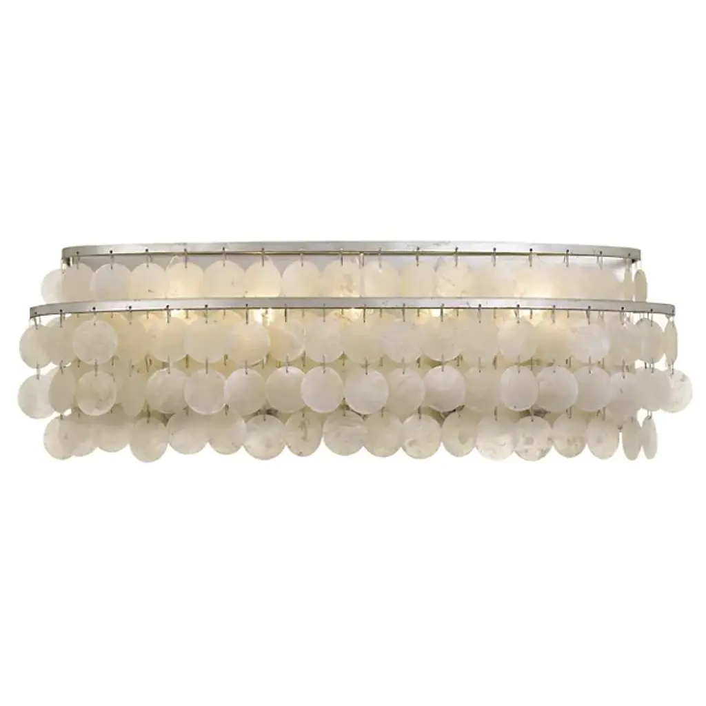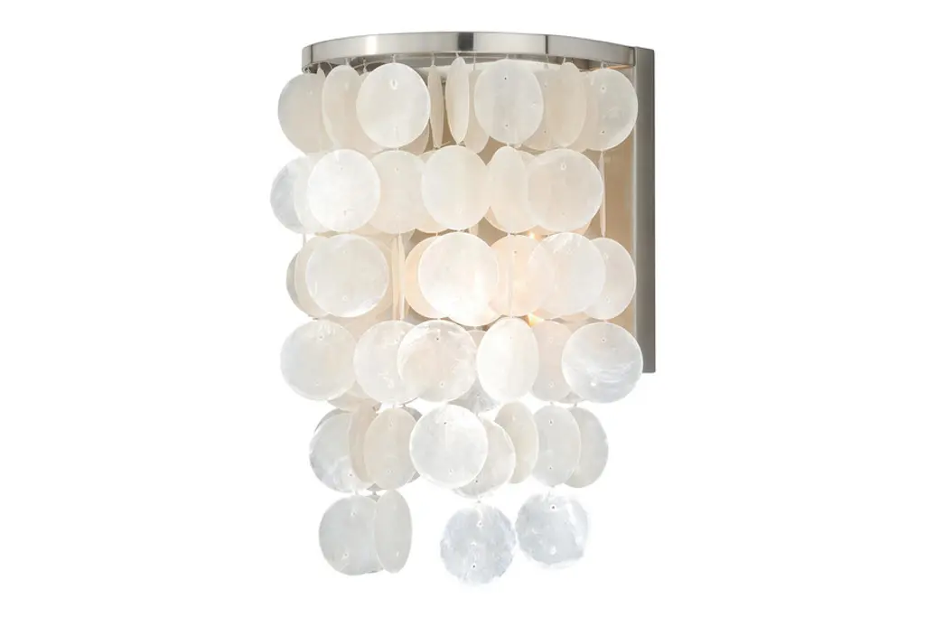 The Crescent Wall Sconce from Kalco Lighting beautifully marries intricate patterning with a contemporary design, resulting in a fixture that exudes fluidity and grace. Crafted from high-quality steel, this sconce showcases an exceptional level of durability and serves as a stunning piece of modern art. Its shade is adorned with capiz shell, infusing a touch of natural beauty and elegance into its overall design. This combination of opulent materials and contemporary aesthetics makes the Crescent a remarkable lighting fixture.