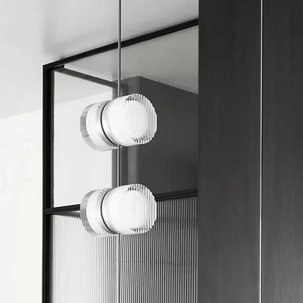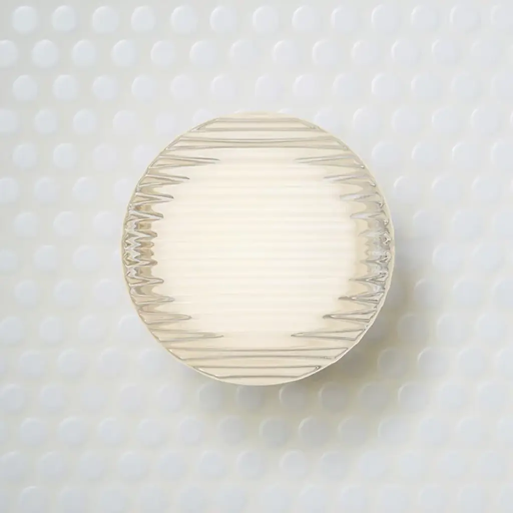The Crisp LED Indoor/Outdoor Wall/Flushmount from RBW explores how horizontal ribbing can transform a simple glass disc into a textural lighting element. Developed in 2015, this flushmount uses cast glass construction where the clear exterior surface contrasts with an opaque interior core. The ribbed texture serves both aesthetic and functional purposes, creating visual depth while distributing LED light more evenly. Designed to be mounted either as a wall sconce or ceiling fixture, this piece is adaptable to different spatial needs. Its anodized aluminum hardware provides weather resistance for outdoor installations.