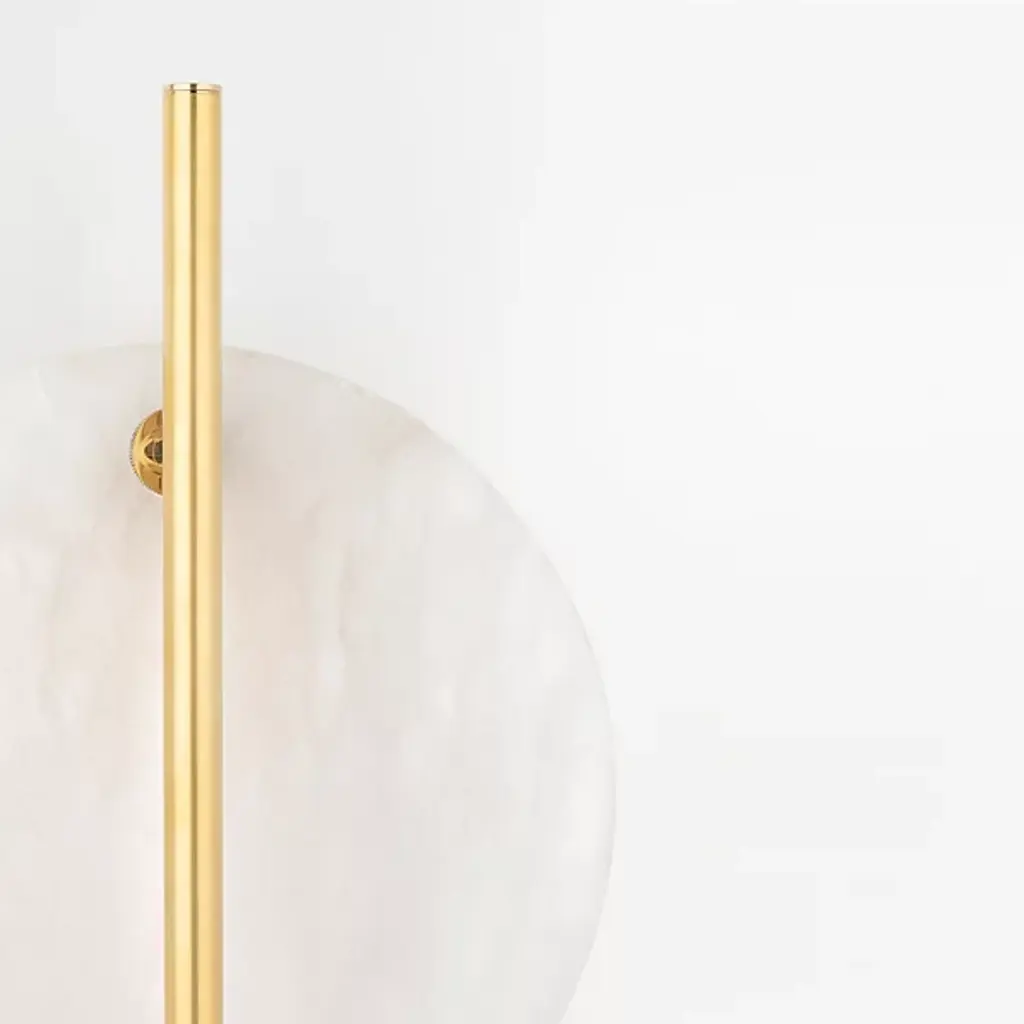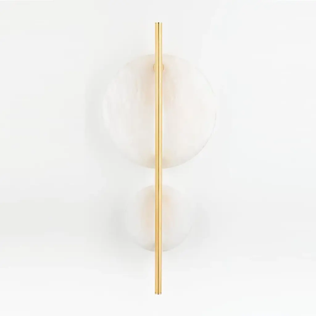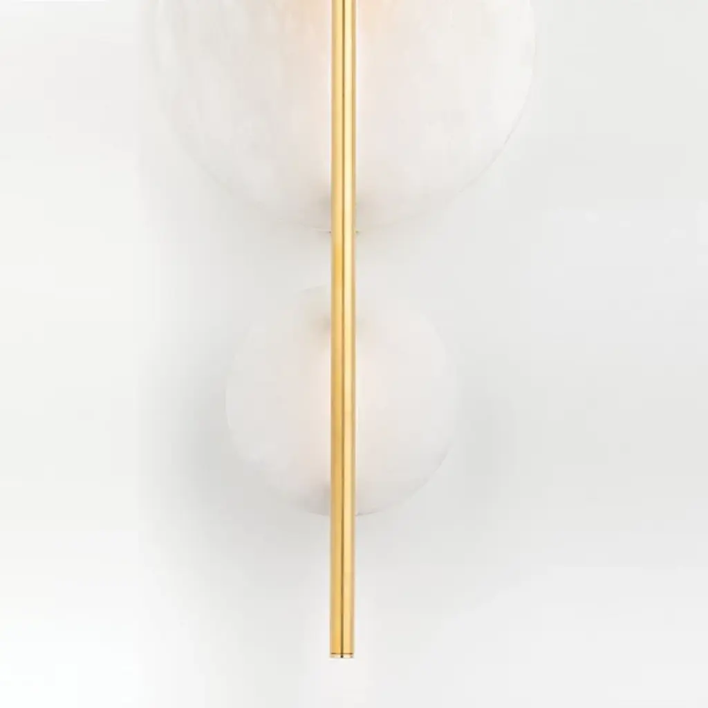 Enhance the appeal of the walls found throughout your home with the modern styling of the Croft LED Wall Sconce from Hudson Valley Lighting. Raising slightly from the wall, this piece features a smooth metal backing that connects to a pair of circular alabaster shades. A thin, matching metal rod attaches to the front, creating a pleasing visual contrast. The subtle detailing found on the alabaster shades is brought to life by single bulbs.
