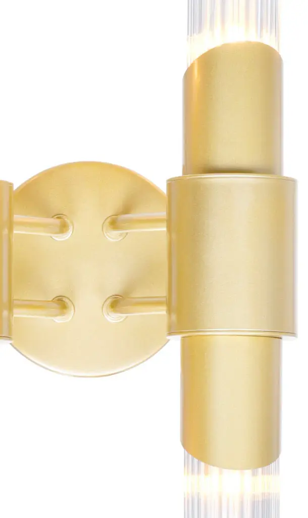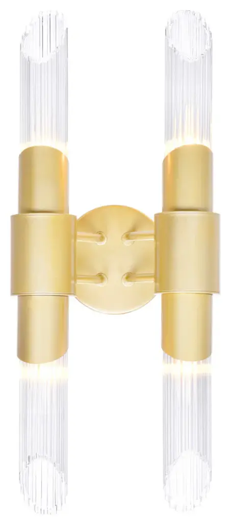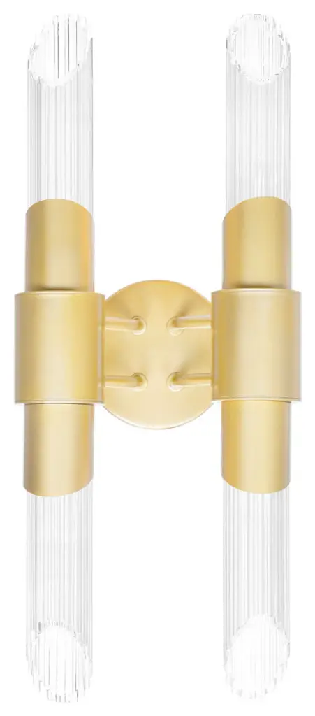 The sleek and textured Croissant 4 Light Wall Sconce in Satin Gold is the finishing touch your bathroom or hallway needs. This wall-mounted lighting option features a two-arm metal base with glass tubes in a vertical orientation. This light source will fit and illuminate narrow and tight spaces well. The elongated silhouette can also help make a room look brighter and higher. Feel confident with your purchase and rest assured. This fixture comes with a one year warranty against manufacturers defects to give you peace of mind that your product will be in perfect condition.