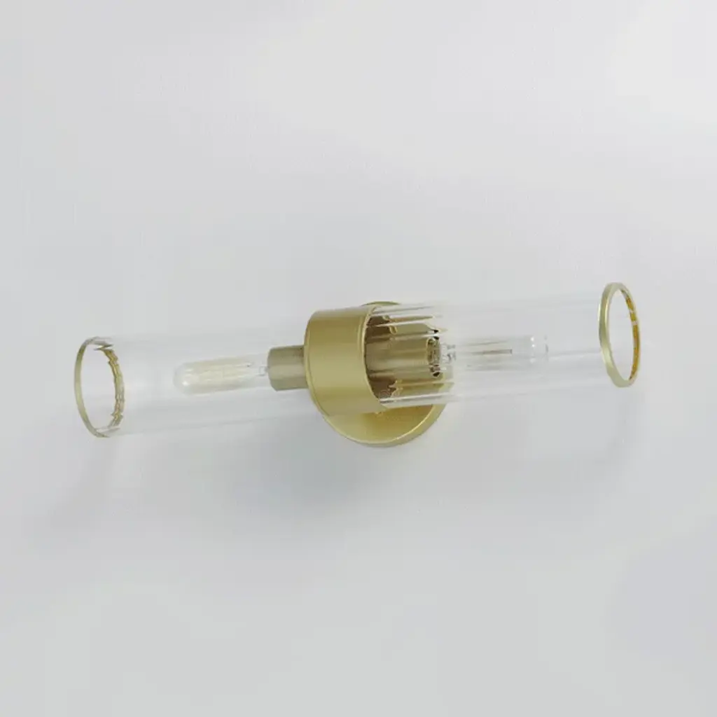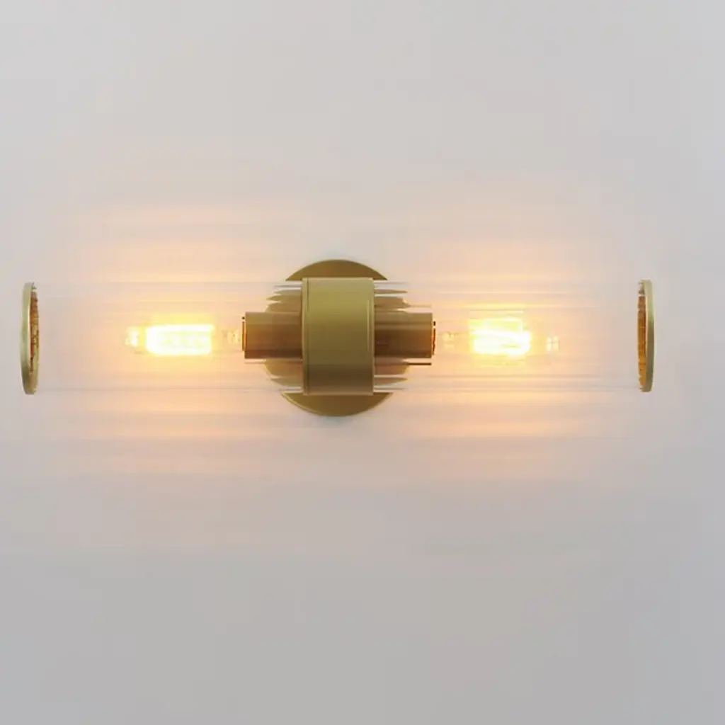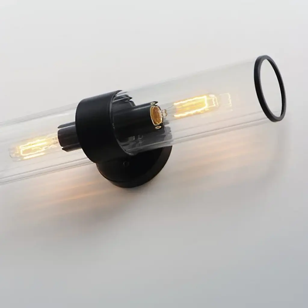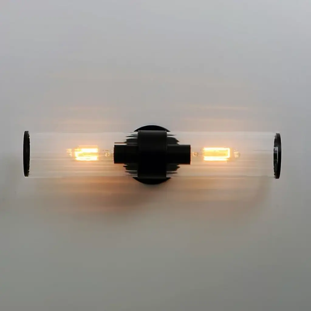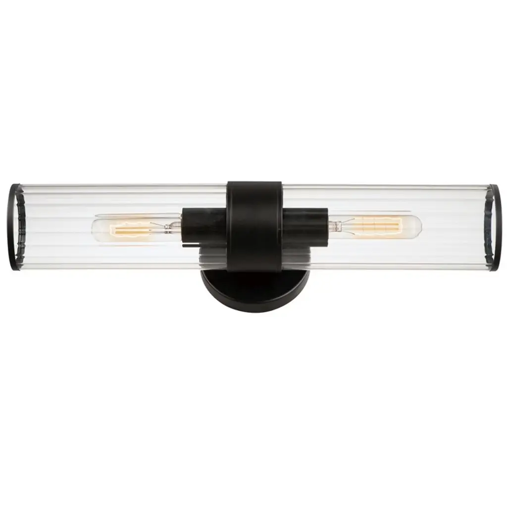 Accentuate your walls with the sleek and stylish Crosby Wall Sconce from Maxim Lighting. Secured to its mounting surface by a sleek disc wall plate, a circular theme predominates as a two-sided housing that holds a single socket out to each side. Best used with retro-style bulbs, the lamping is gentled by cylindrical shades of clear ribbed glass capped by open steel rings that provide a pop of contrast as they distribute their ambient glow.