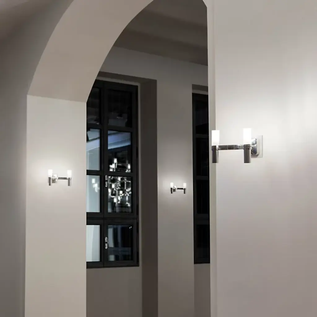The Jehs + Laub Crown Wall Sconce by Nemo is modern modular design at its finest. Although small in size, this lighting solution packs a stylish punch with its double dimmable bulbs and sleek silhouette. We love this piece in doorways, hallways and for lighting a grand foyer. Constructed from die-casted aluminum and sandblasted glass diffusers, this sturdy piece will last you for years to come.