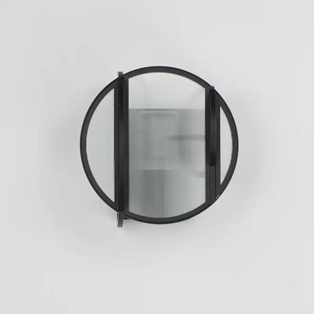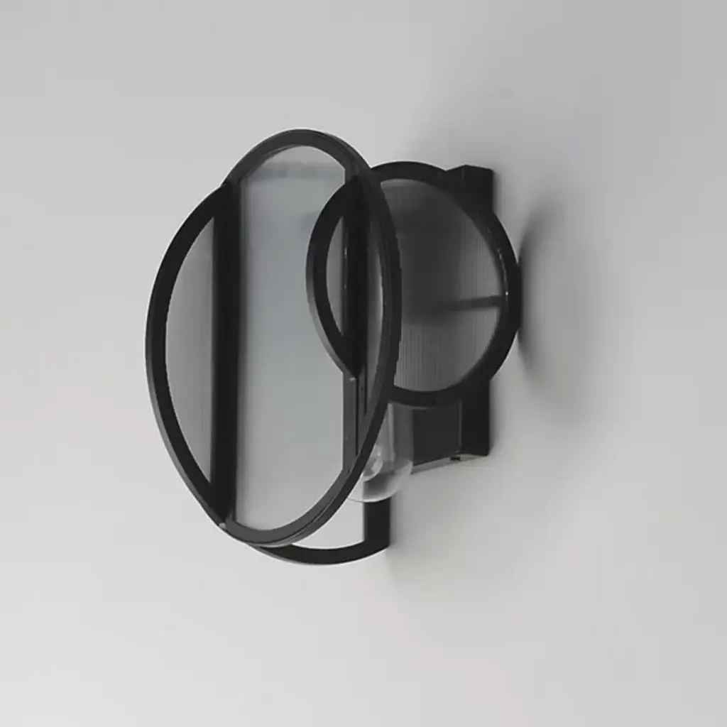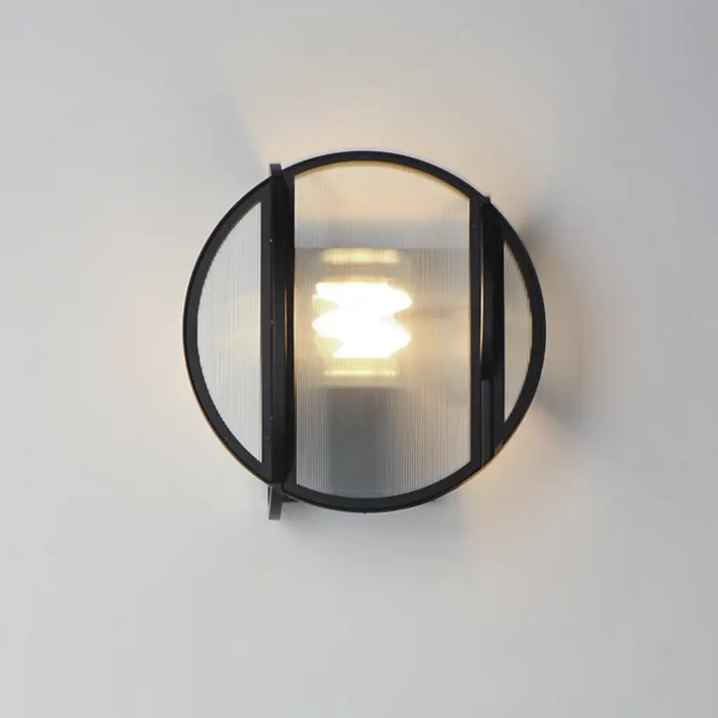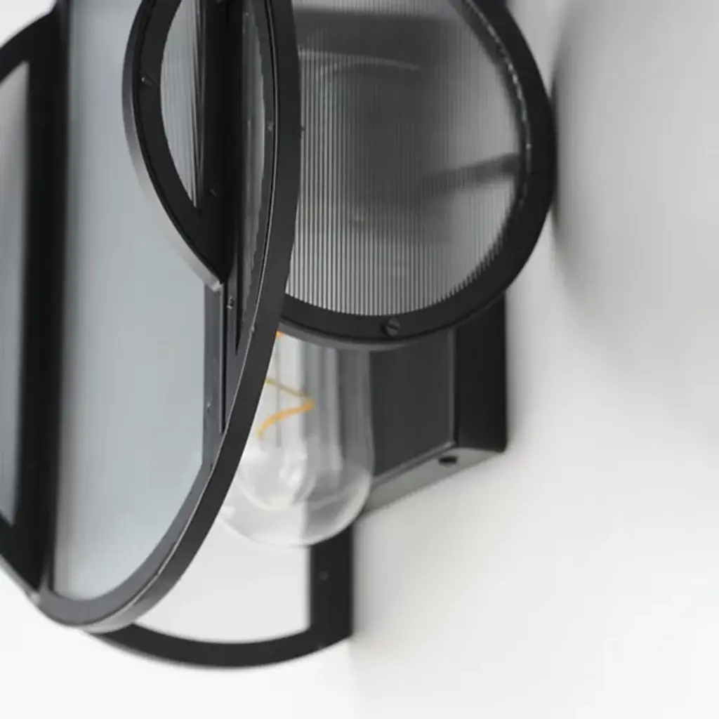 Introducing the Crux Outdoor Wall Sconce from Studio M, where ribbed glass panels converge along a sleek Matte Black iron rod, offering a captivating interplay of textures. Tubular bulbs suspended at different heights illuminate through the textured glass, casting a mesmerizing ambient glow. The amalgamation of circular and arched shapes creates an industrial glass texture, echoing internal light patterns. Reminiscent of bound glass and orb pendants, this design effortlessly merges retro and contemporary elements, exuding a transitional allure.