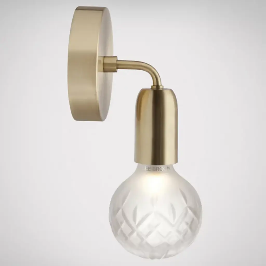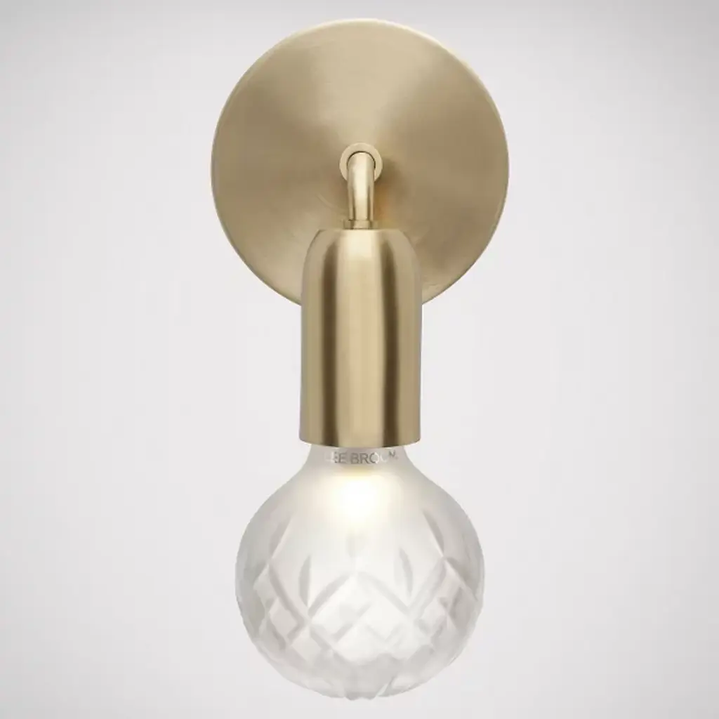 See the future of your home décor plans by gazing into the pleasant glow from the Crystal Bulb LED Wall Sconce by Lee Broom. This elegant fixture was designed in 2012 and made in the UK from a smooth steel housing curving down from a disc wall mount. The socket extends out into cut lead crystal inspired by whiskey glasses and decanters for that refined, traditional touch. An excellent choice as a single statement or paired up, the diffuser is rich enough for modern décor, while the metal structure is simple enough to blend into contemporary surroundings as well.