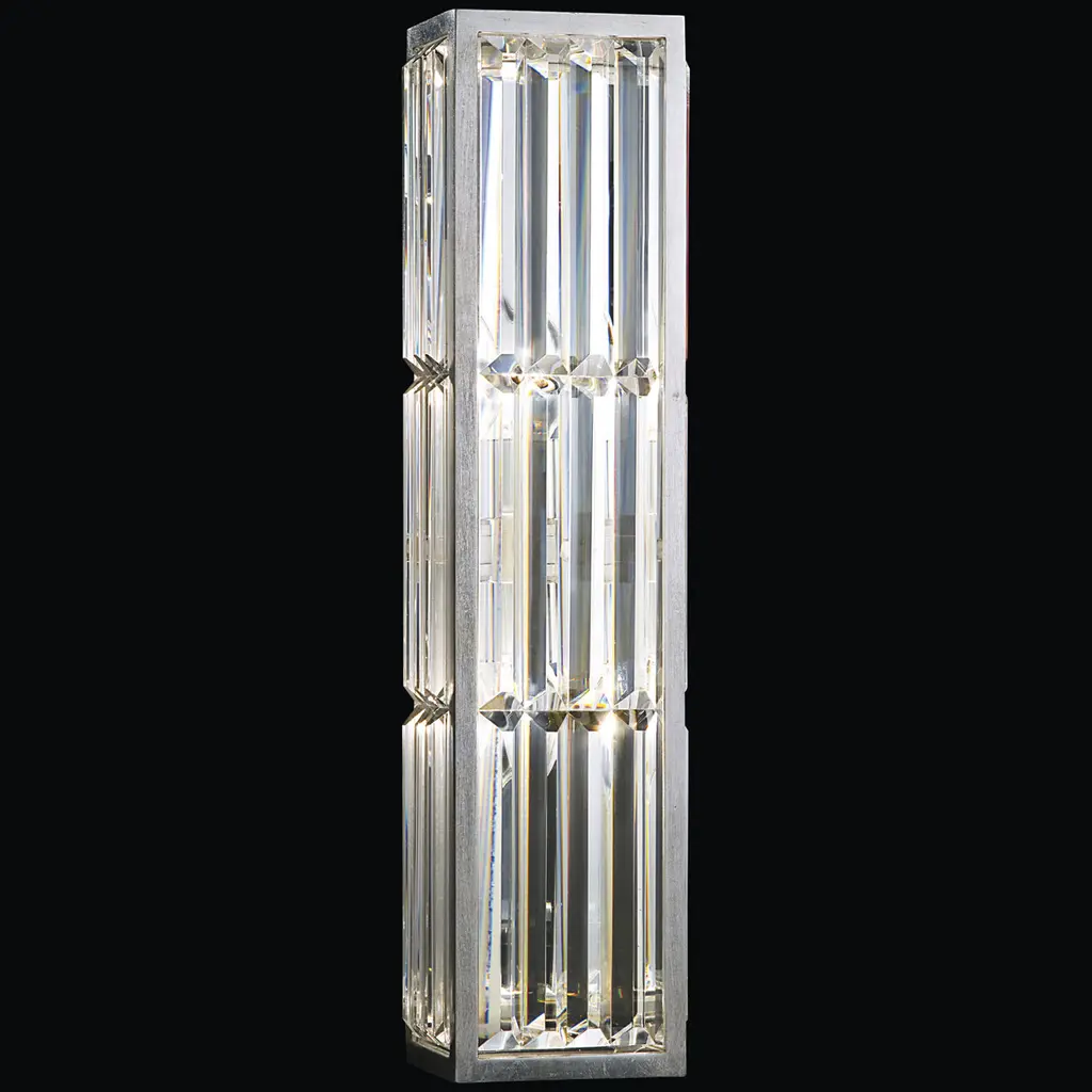 Sconce in a modern design of multi-faceted crystal panels, set in gold leaf metal frames that refract light and create an enchanting aura highlighting appointments and transforming a space with extraordinary effect. Also available in silver leaf.