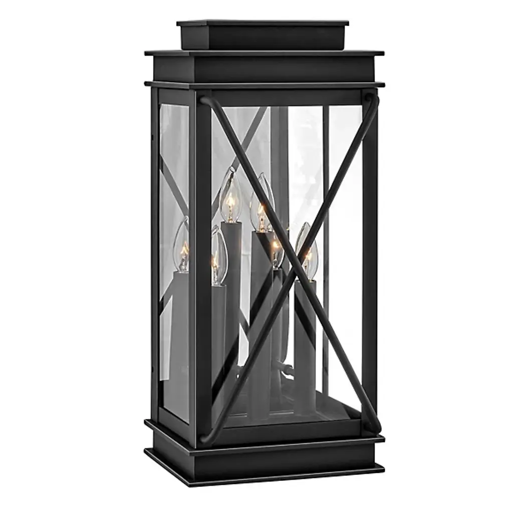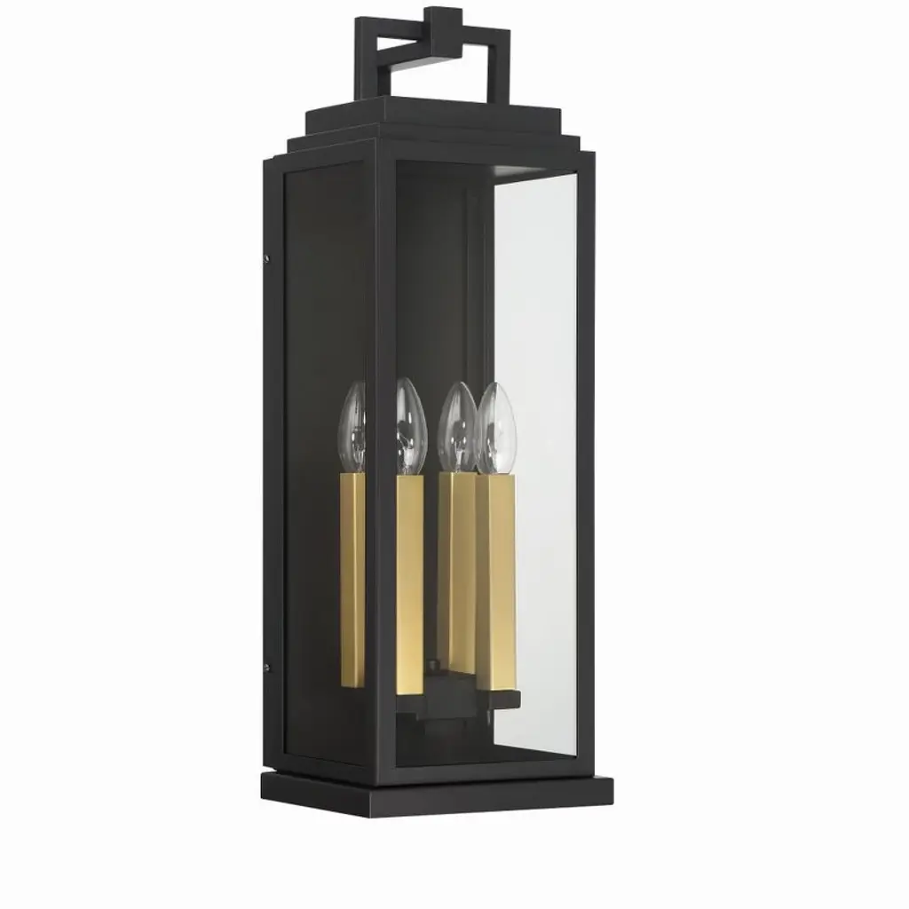 The Aspen Collection features clear glass panels and a sleek black metal frame, blending classic charm with contemporary style. The elongated lantern design showcases a flat geometric arm securely fastened to a rectangular top, creating a striking visual effect. A unique feature of the Aspen Collection is the versatile candle sleeves that ship with both white and gold finishes, allowing you to customize the look to suit your aesthetic preferences. With the Aspen Collection, you can transform your outdoor space into a welcoming oasis of timeless beauty, making a lasting impression on all who visit your home. Aspen collection features a versatile transitional design. / A balanced blend of traditional and contemporary elements, featuring clean lines, neutral finishes, and subtle detailing, offering versatile designs that complement a variety of interiors. / The dark smoky tones of the graphite finish look extraordinary in outdoor settings. / Matte Black finishes are everywhere in contemp
