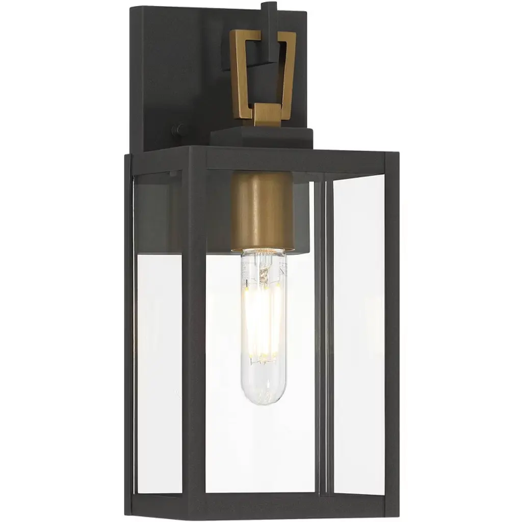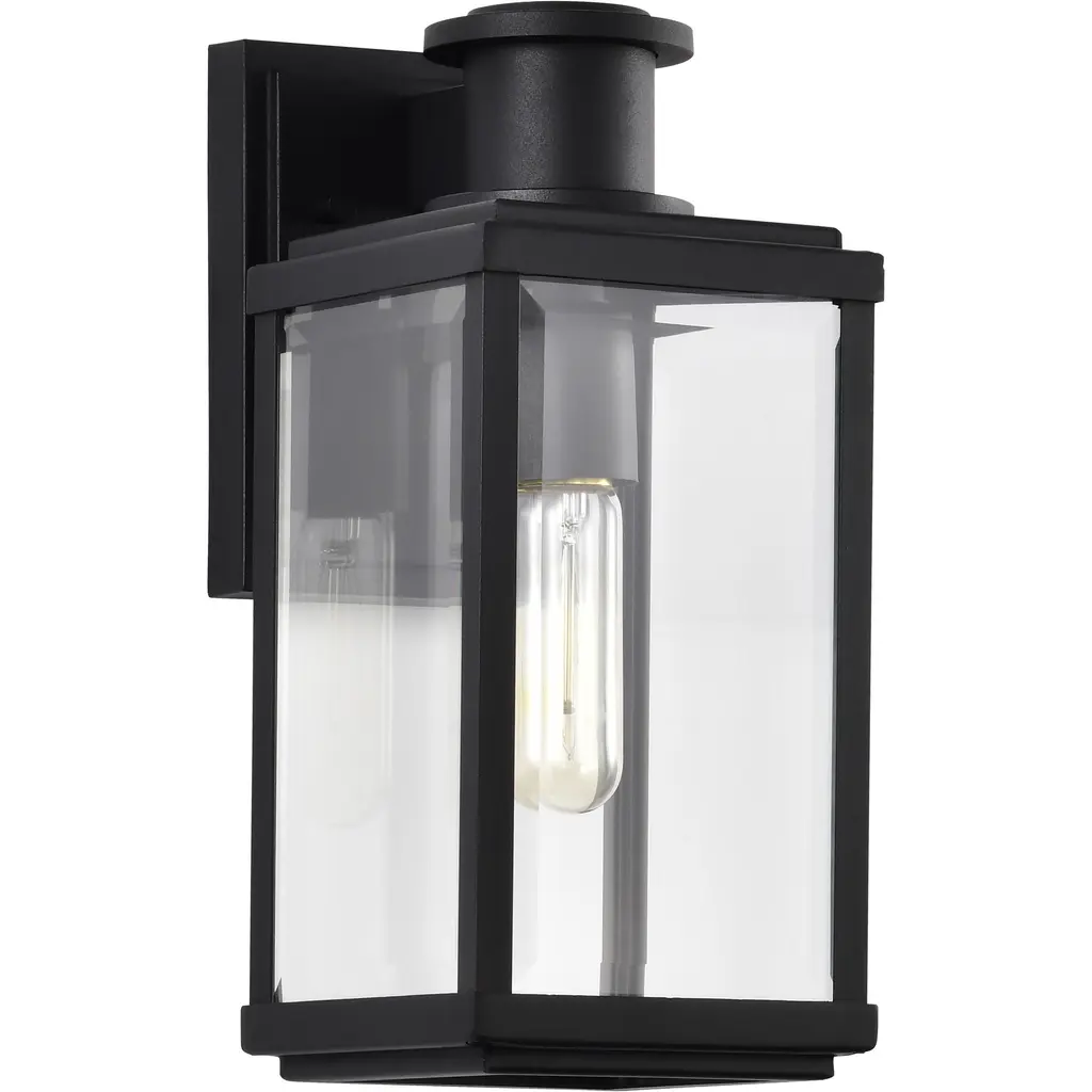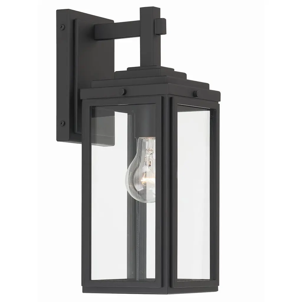 Capturing modern style with clean lines and sharp angles, the Bryon collection will enhance any architecture. Its tapered rectangle clear glass shade allows bright illumination to improve your home's exterior. This sleek design adds timeless appeal to any entry, patio, or terrace. Byron collection features a versatile transitional design. / A balanced blend of traditional and contemporary elements, featuring clean lines, neutral finishes, and subtle detailing, offering versatile designs that complement a variety of interiors. / The dark smoky tones of the graphite finish look extraordinary in outdoor settings. / Matte Black finishes are everywhere in contemporary design. This velvety muted finish makes a modern statement and can create a beautiful contrast while maintaining a super stylish and sleek look. / 5.25"W x 14"H x 6.75"D / 1 light 100- watt, E26 Medium base / Steel + Glass / Authorized for use in wet interior splash or exterior exposed weather locations. Meets United States U