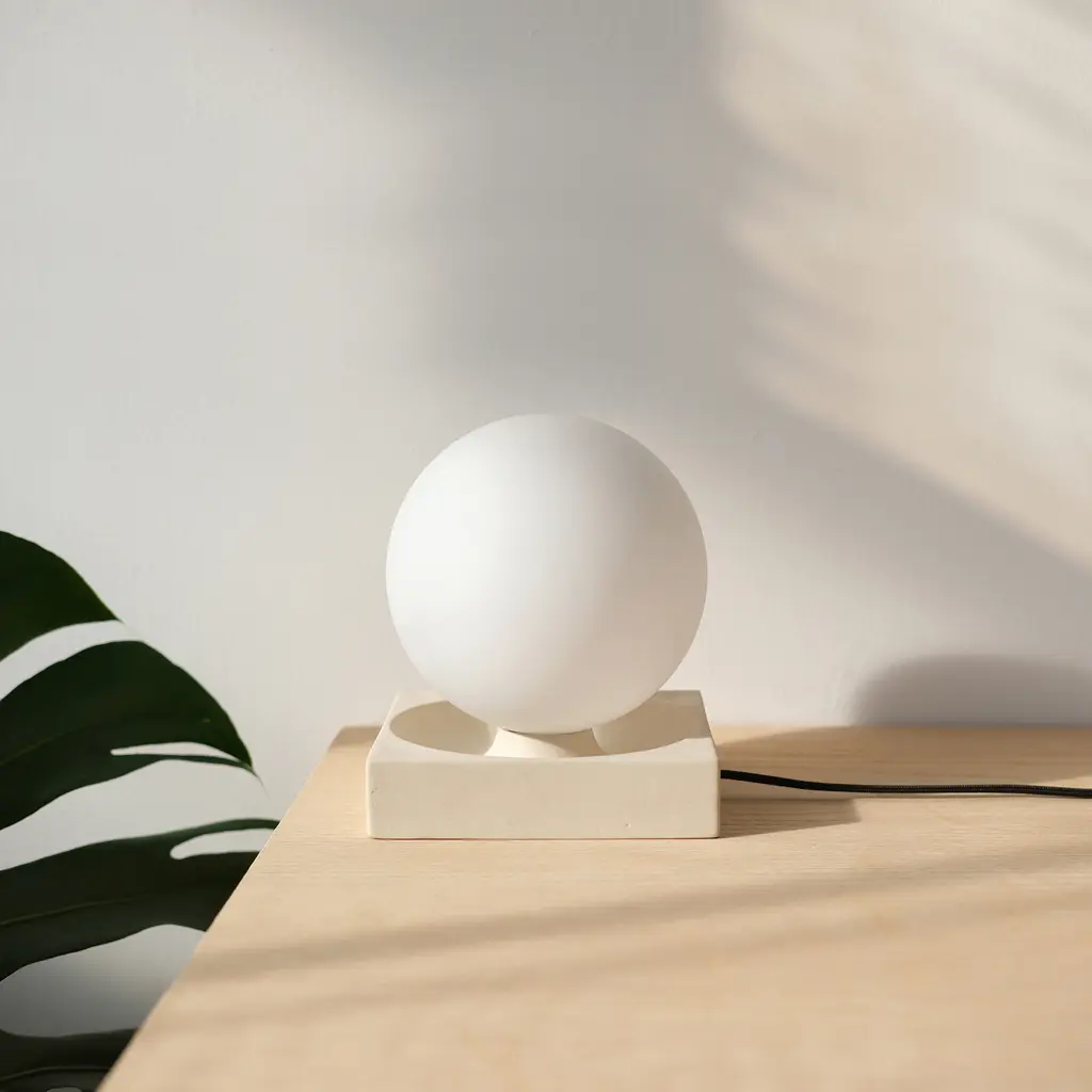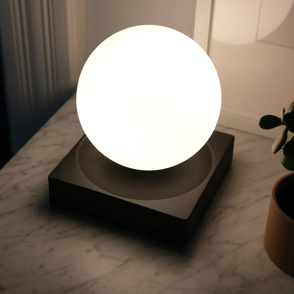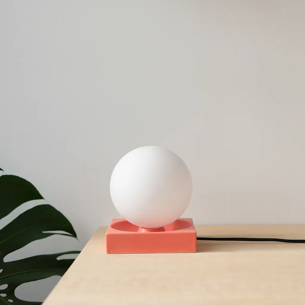 Add a touch of whimsy and elegance to any room with the Misewell Cubic Lamp. Designed with a glass globe that seems to hover just above the ceramic base, this table lamp brings a bit of magic into modern homes. Cubic also has a dual purpose, as you can use it as a table lamp or as a wall-mounted sconce. Made by hand in Wisconsin, USA, the ceramic base has a simple rectangular form with a circular indentation that makes the glass sphere appear like it’s floating – the effect becomes even more striking when the lamp is in use. Similarly to other Misewell lamps, the Cubic Lamp is UL listed for more peace of mind. Available with Coral, Black or White bases.