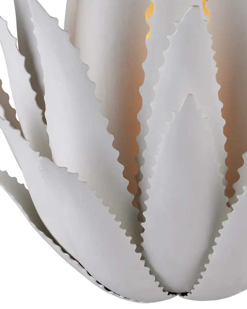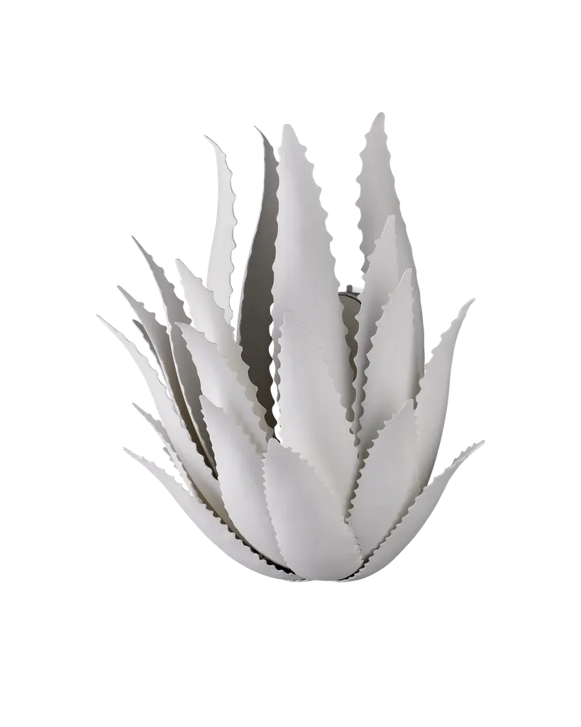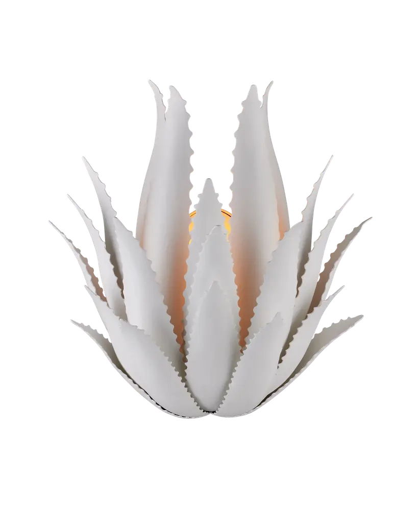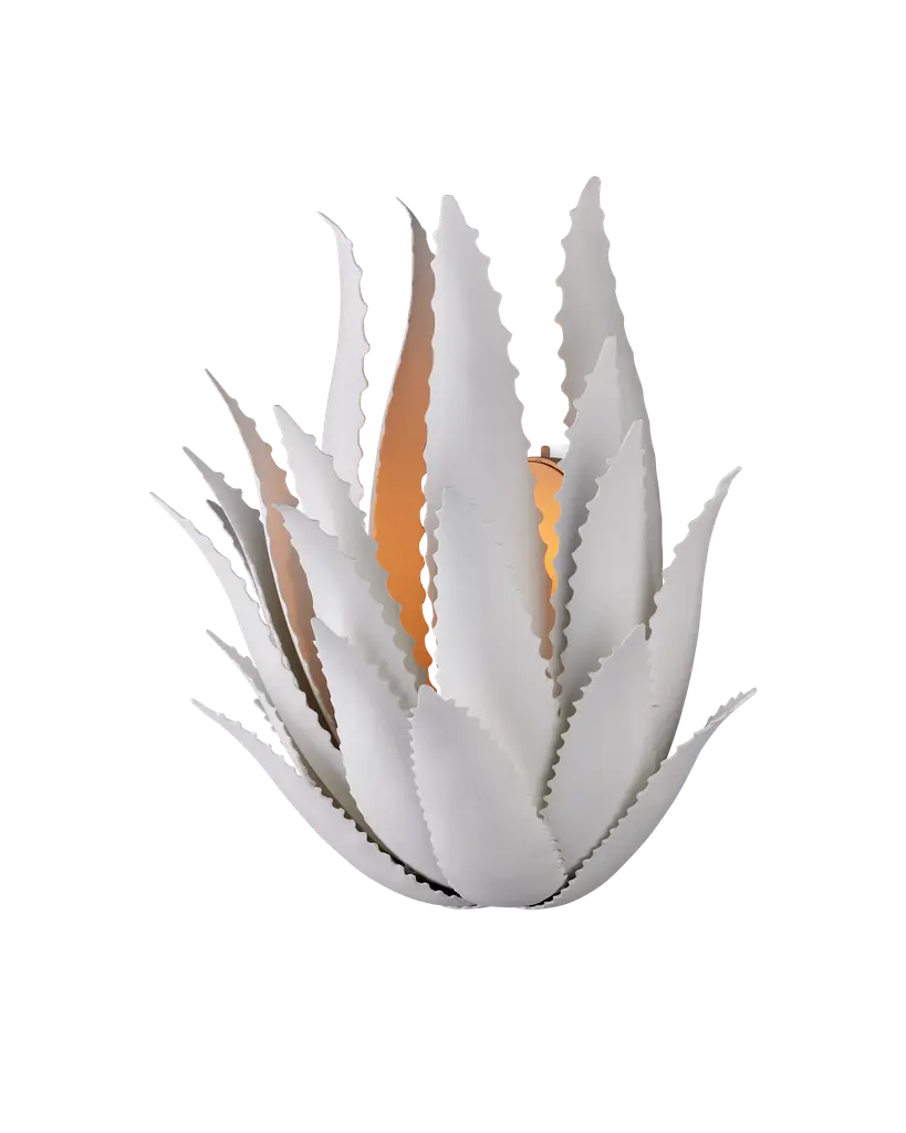 The Agave Wall Sconce was inspired by the flourishing plant of the same name, whose spiky, leathery fronds curl up from the ground. This sense of movement has been captured in the flowing spikes on this white wall sconce. “My love of the Agave plant, of which hundreds of varieties flourish in the peninsula, has inspired me for many years,” says the fixture’s designer Marjorie Skouras. Her passion for the Yucatan, the surroundings in which she lives and through which she translates the flora and fauna into dynamic products in her studio, shines in this wrought iron creation covered in a crisp gesso white finish. Wipe clean with a soft, dry cloth or static duster. Always avoid the use of harsh chemicals or abrasive cleaners as they may cause damage to the item's finish. Due to the use of natural materials, handmade craftsmanship, or hand finishing, expect some color variances. Hand crafted pieces may have slight size differences.