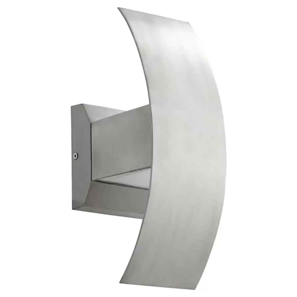 The Curvo LED Wall Sconce by Quorum International has a sleek, contemporary look that offers a mix of form and function to spaces. A thin, simply curved metal panel shields a squared body the houses energy-efficient light sources with a graceful, minimal appeal. Diffusing an even layer of illumination through acrylic shades, this wall sconce offers a practical and ambient touch to its surroundings and is dressed up with a beautiful, uniform finish.