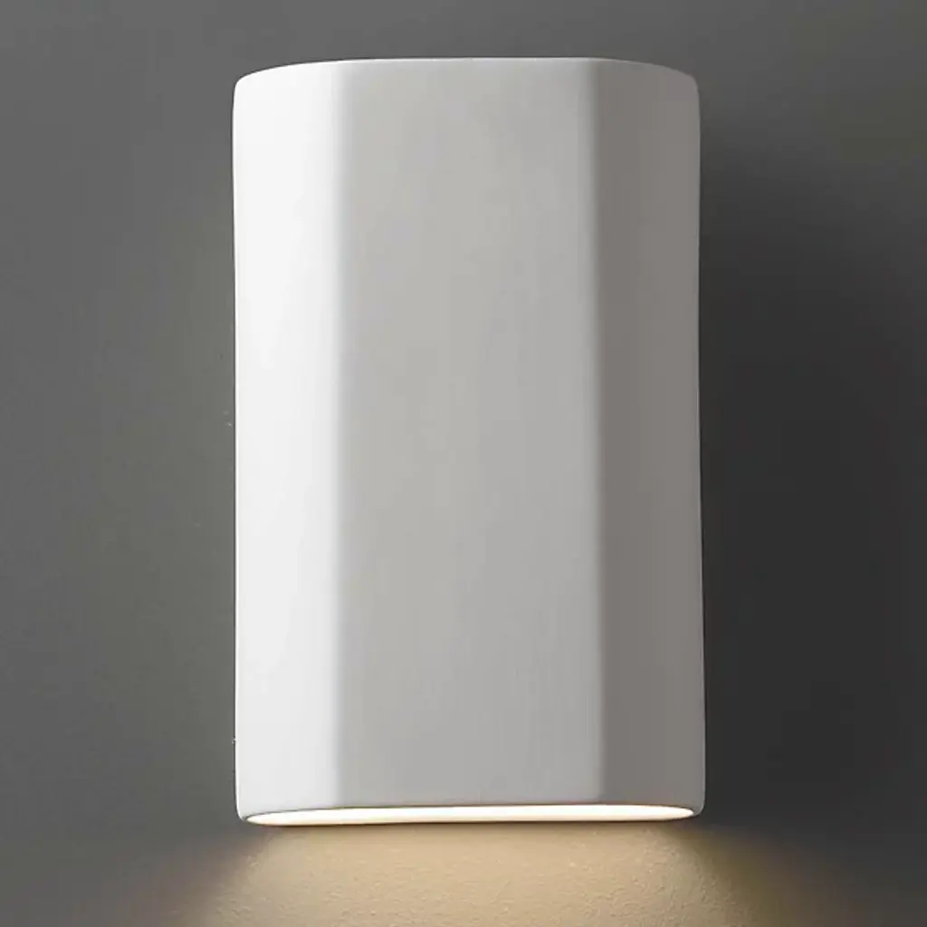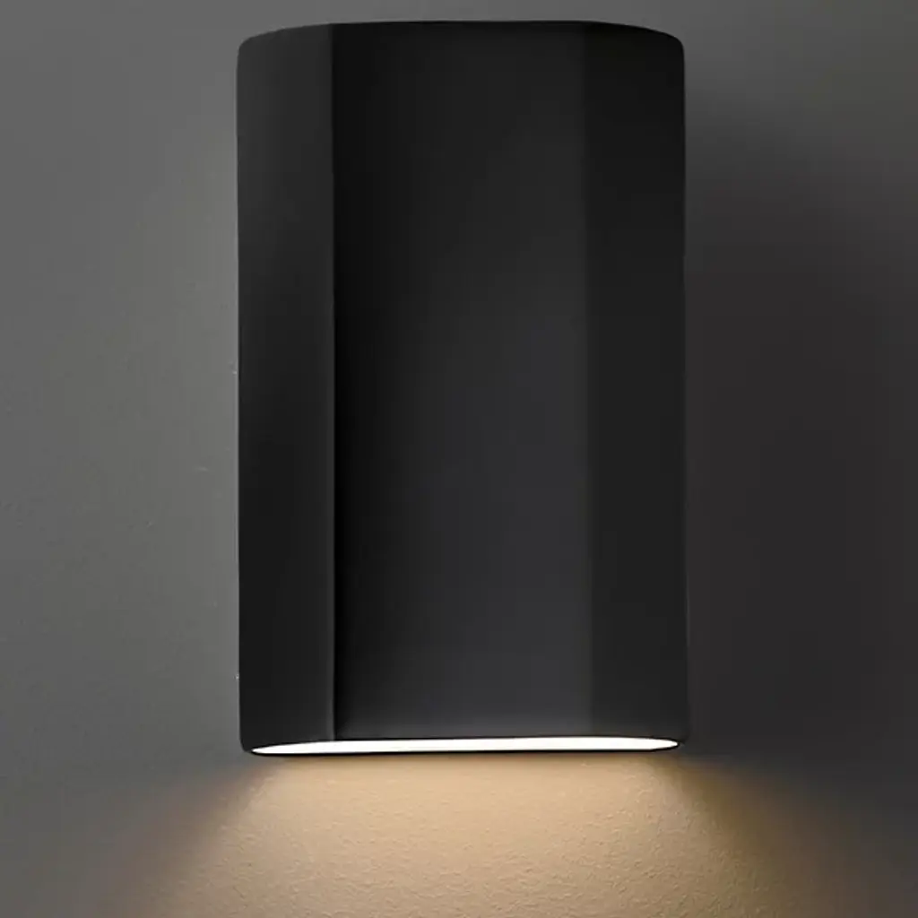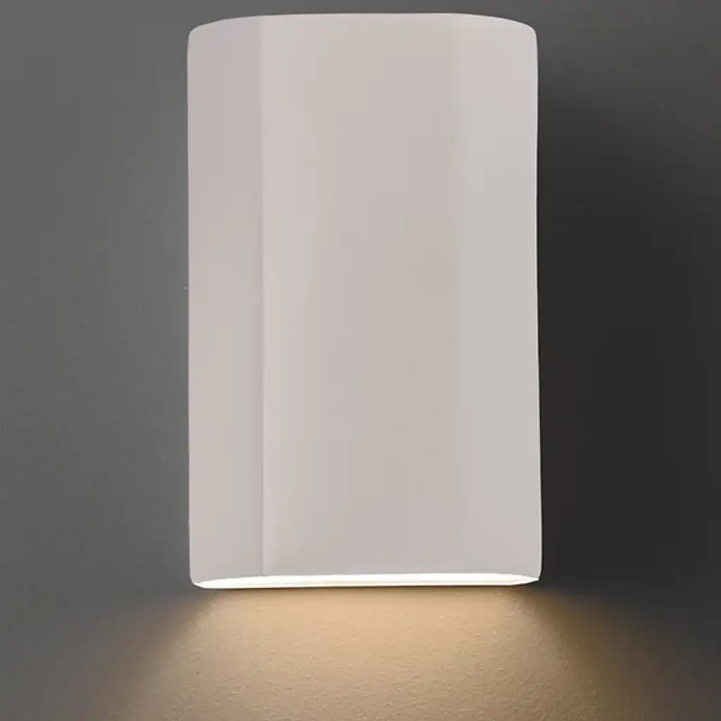 The Cylinder ADA Outdoor Wall Sconce by Justice Design Group makes it easy to create a seamless outdoor lighting design. Choose to make the fixture stand out or blend in with its surroundings as needs dictate. The projection of this wall sconce is essentially a 3-sided cylinder, handmade out of durable Ceramic, and closed at the top to keep the light source weather resistant and watertight. The closed top also focuses light downward, where it's needed most at night for safe travel along a narrow path, pointing out an entryway and for accenting a building or retaining wall's unique textures.