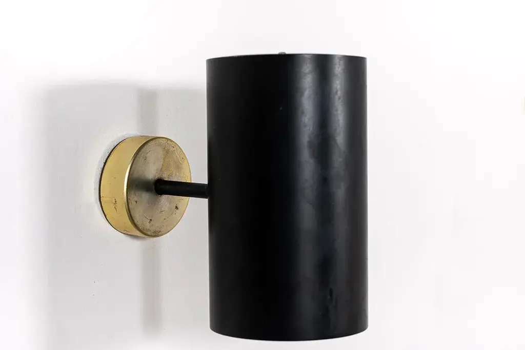 Cylinder Wall Lights in Metal and Aluminum, 1950, Set of 2, in Good conditions. Designed 1950 to 1959 This piece is attributed to the mentioned designer/maker. It has no attribution mark and no official proof of authenticity, however it is well documented in design history. I take full responsibility for any authenticity issues arising from misattribution, European Plug (up to 250V).The wiring of this item may be original and might need replacement, if not specified otherwise.