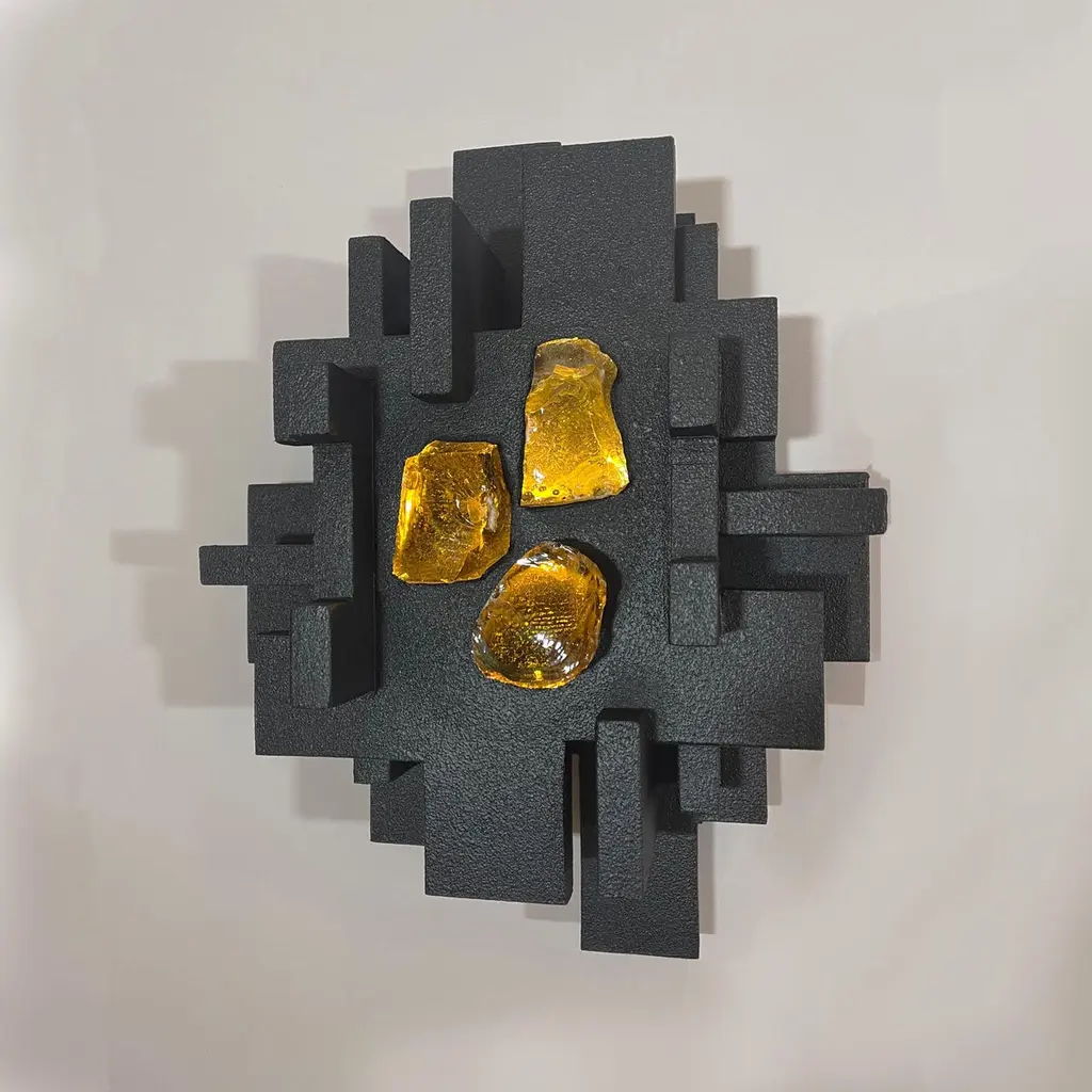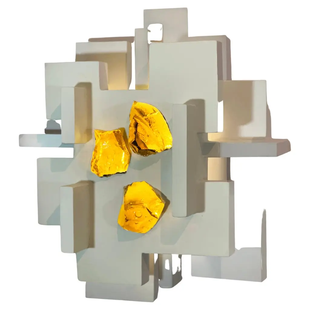 Dag Wall Sconce by Daniel Schneiger.Dimensions: D 36 x W 43 x H 15 cm.Materials: wood, slag glass and resin.Custom slag glass colors available,custom finishes available.All our lamps can be wired according to each country. If sold to the USA it will be wired for the USA for instance.Dan SchneigerAs an architect and artist, I’ve always been conscious of the symbiotic relationship between the two disciplines. Sensing a growing divide between how we design architecture and make art, I was compelled to make architecturally significant objects with my hands. My work is an exploration of the symbiosis between art and architecture and the tension between technology and handcraft.