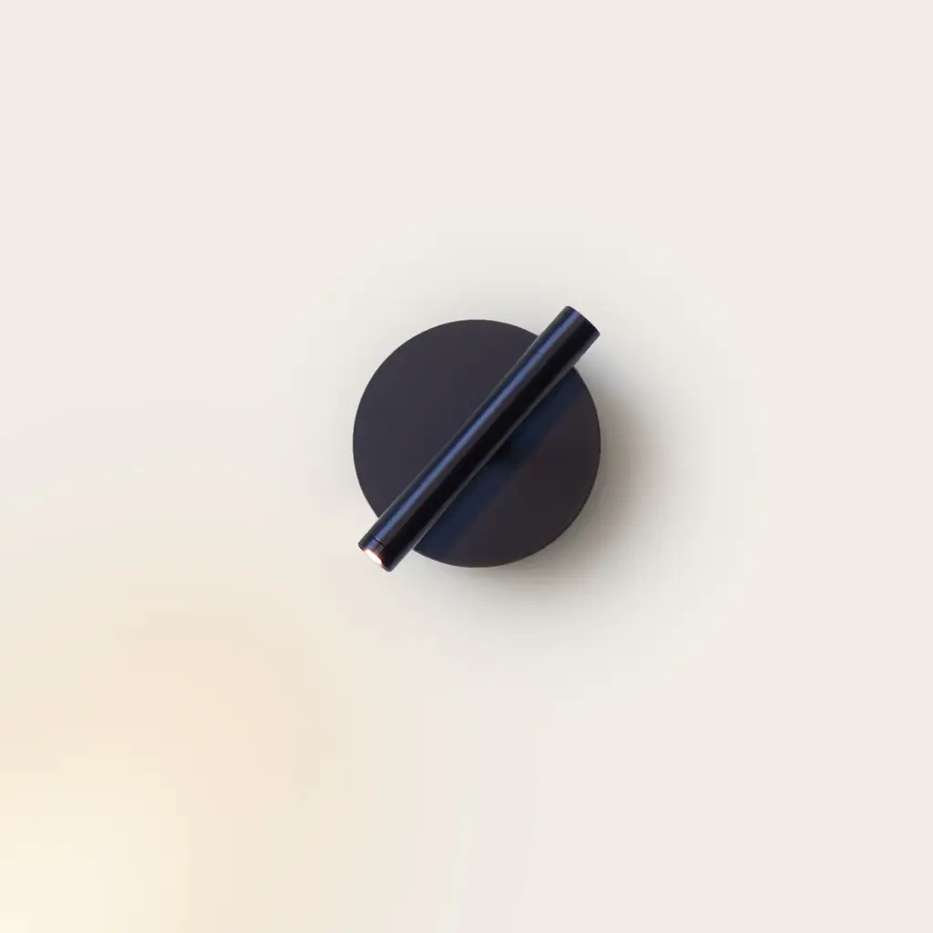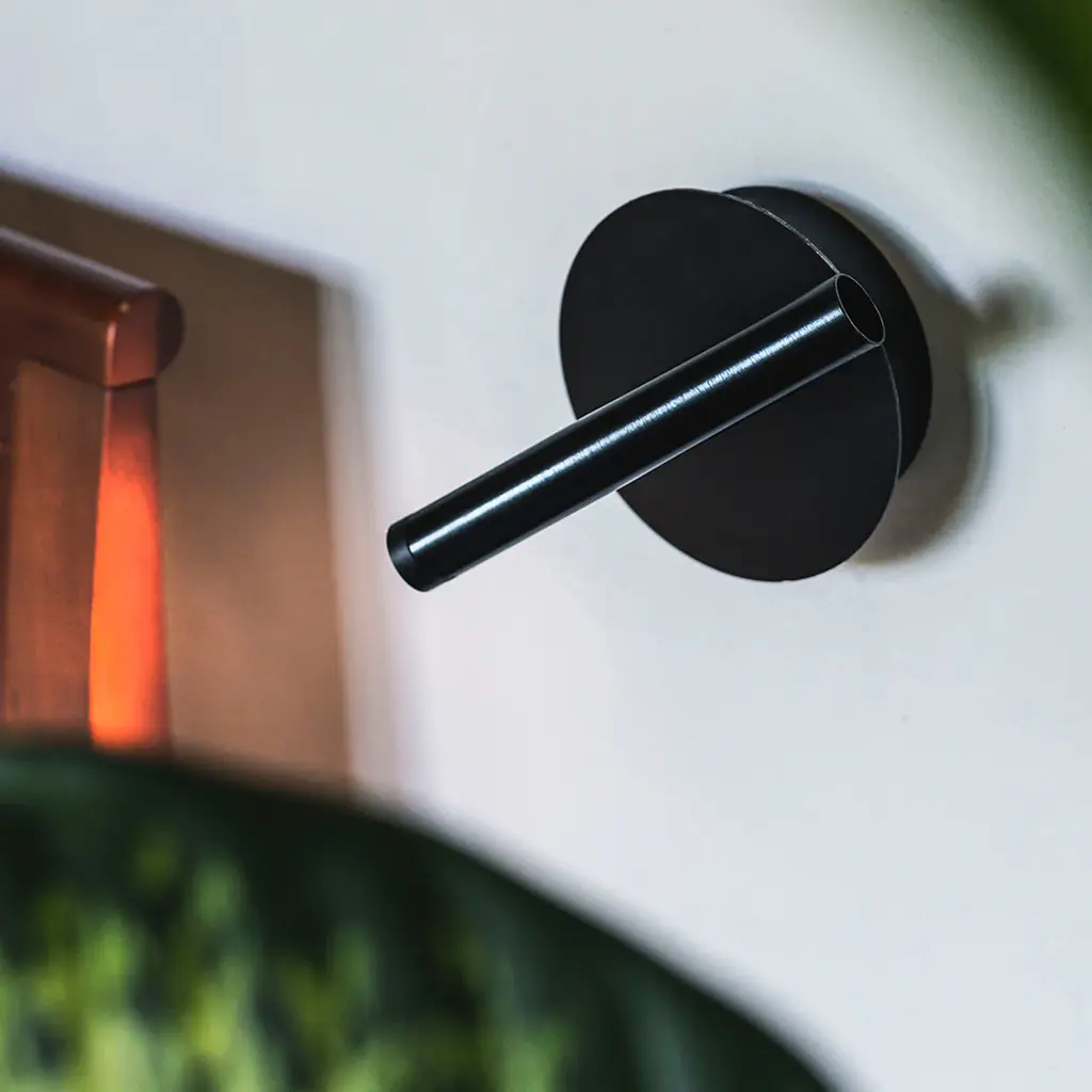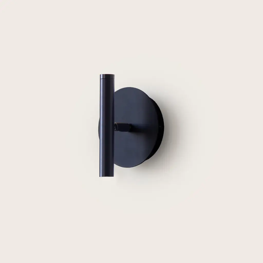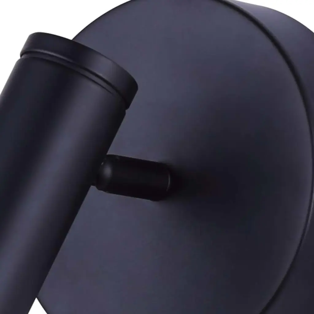 Designed to bring a discreet light to small areas, such as a hallway, or displayed in pairs above nightstands in the bedroom, this exquisite wall lamp adds a geometric style to any room. Artfully crafted of metal with a total-black look, it features a round base (Ø 12cm) flush-mounted on the wall with touch dimmer switch in the back and a cylindrical shade (L 15 x Ø2.2cm) that can be manually adjusted to direct the light where most needed. Requires a single LED 5W (not included).