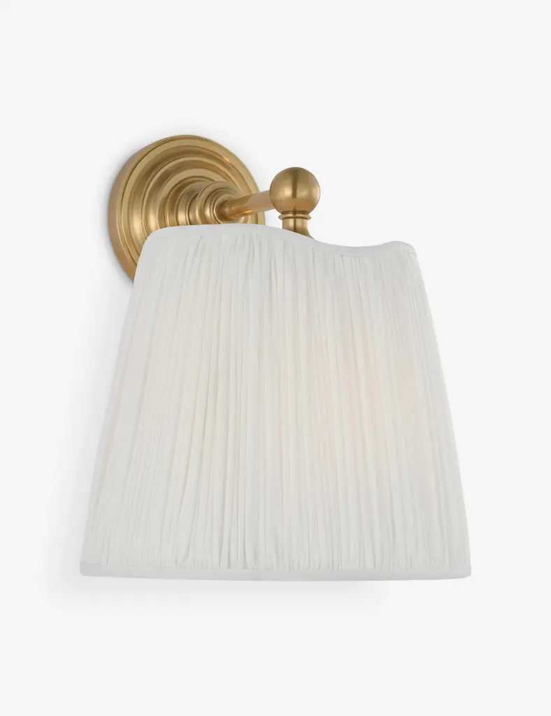 DAISY is a fabric and brass wall lamp. An elegant wall lamp with lampshade in plissé fabric and brass rounded arm inspired by the twentieth-century.FeaturesMaterial: brassFinishes: chrome, light gold or polished nickelClassification: IP20Power: MAX 40WATT E14 IBC IBTWeight: 0.92 Kg