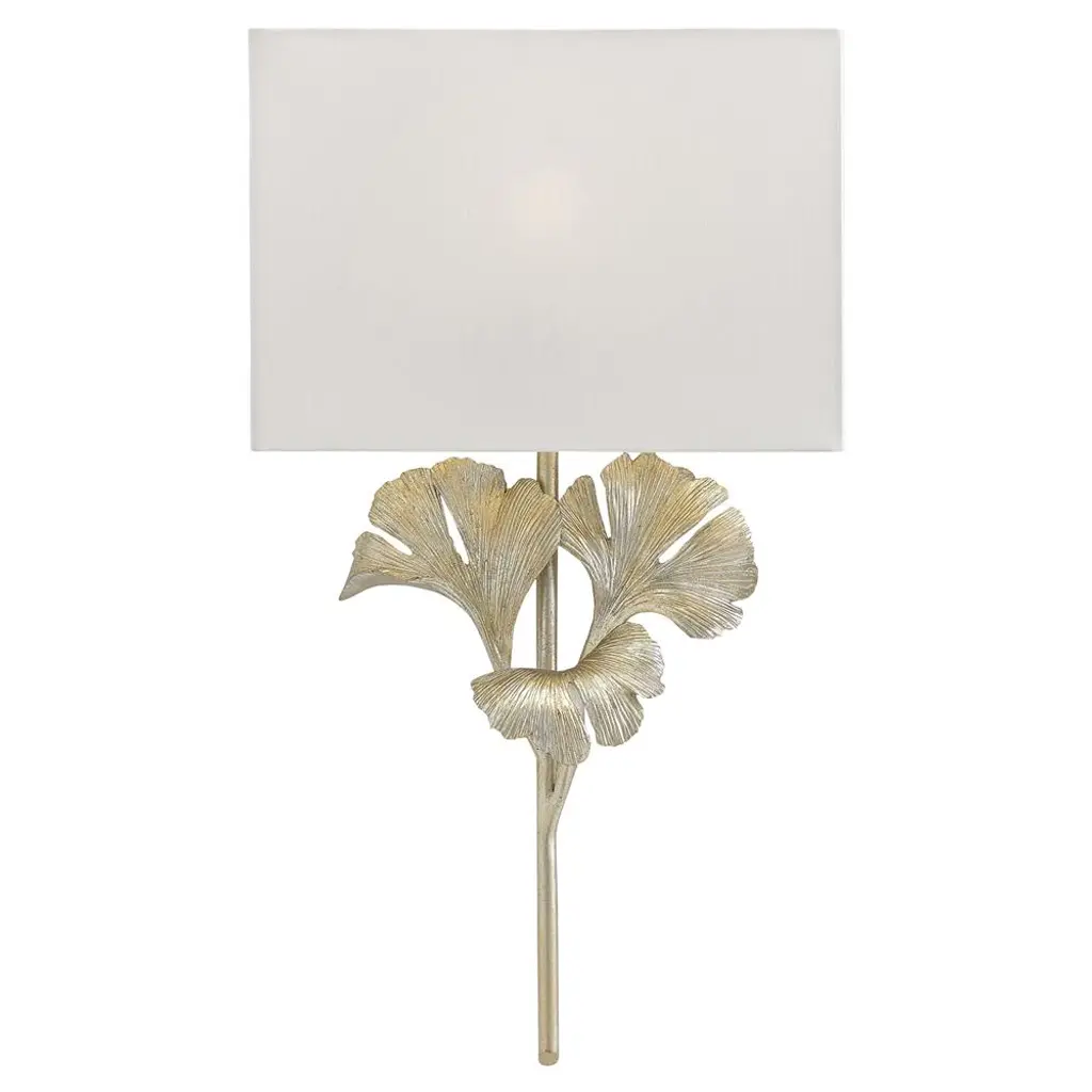 Daisy Hollywood Regency Silver Wrought Iron Gingko Leaf Wall Sconce