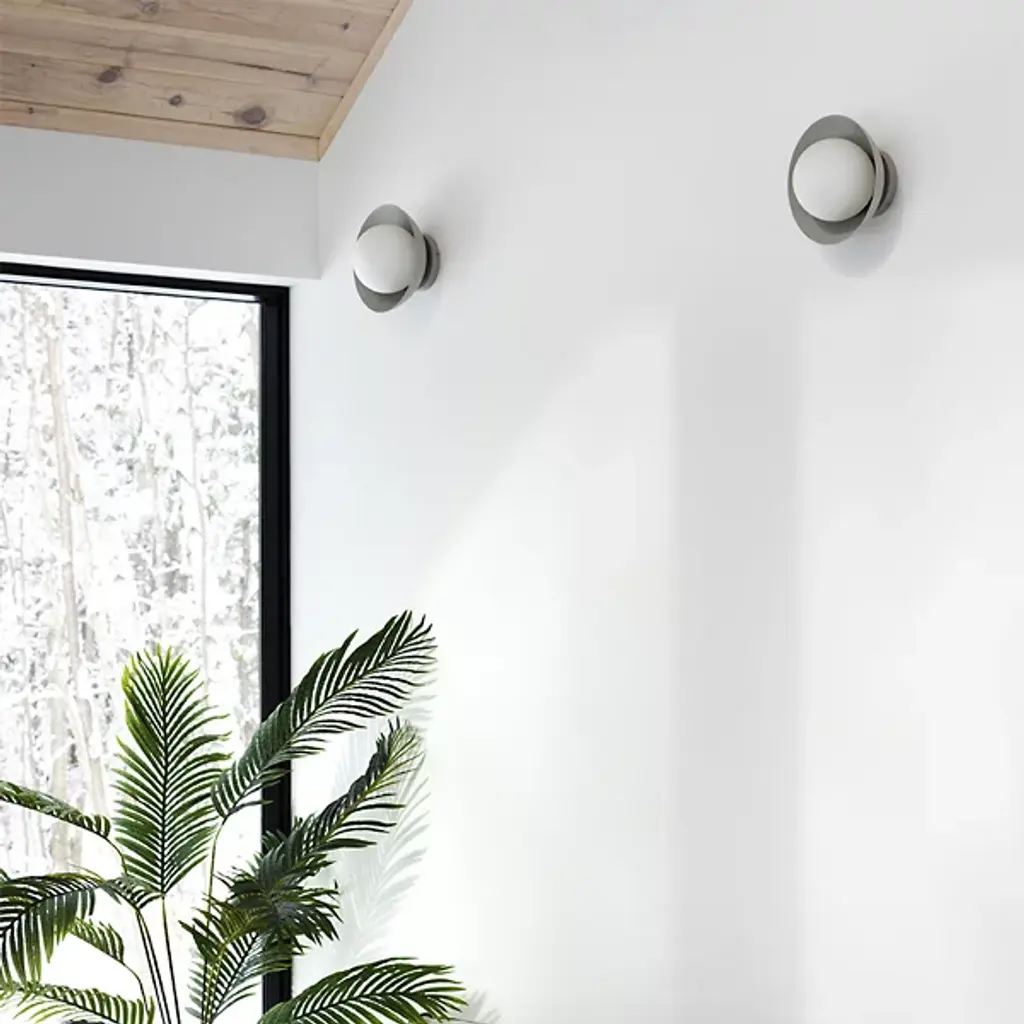 Add a touch of dimensional brilliance beside your bed or sofa with the Danoise Wall Sconce from Luminaire Authentik. This contemporary light fixture features a bowl-shaped open frame of metal that grasps a frosted glass globe shade of glass. An LED casts a brilliant glow through the spherical glass form. A round backplate provides a clean linear point of contact with the wall. With its mix of metal and diffused illumination, this wall sconce exudes contemporary elegance.